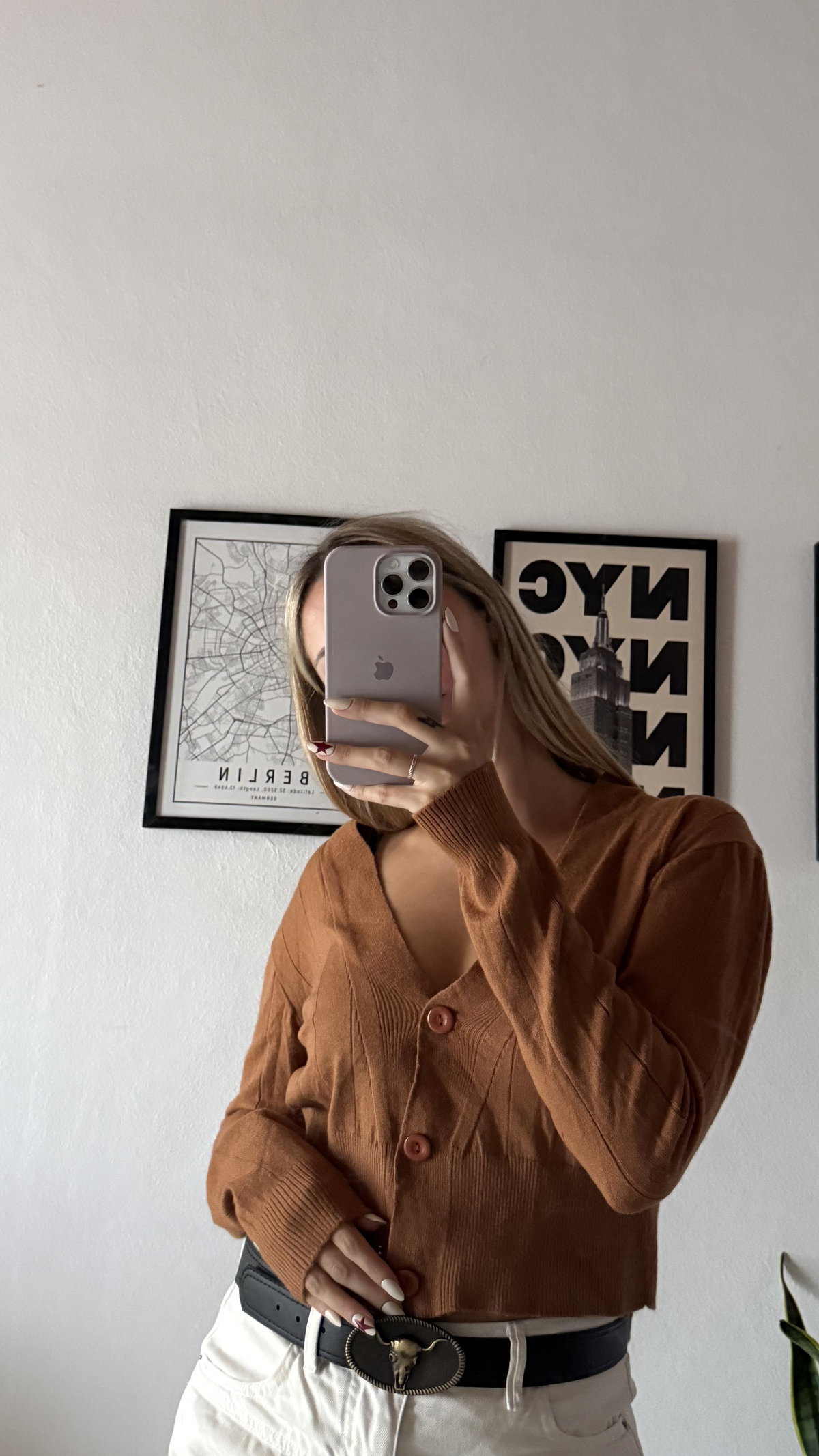 cardigan de bremer, corto. Talle unico, va para S/M aprox. tiene un enganche mínimo en el hombro. ver ultima foto.