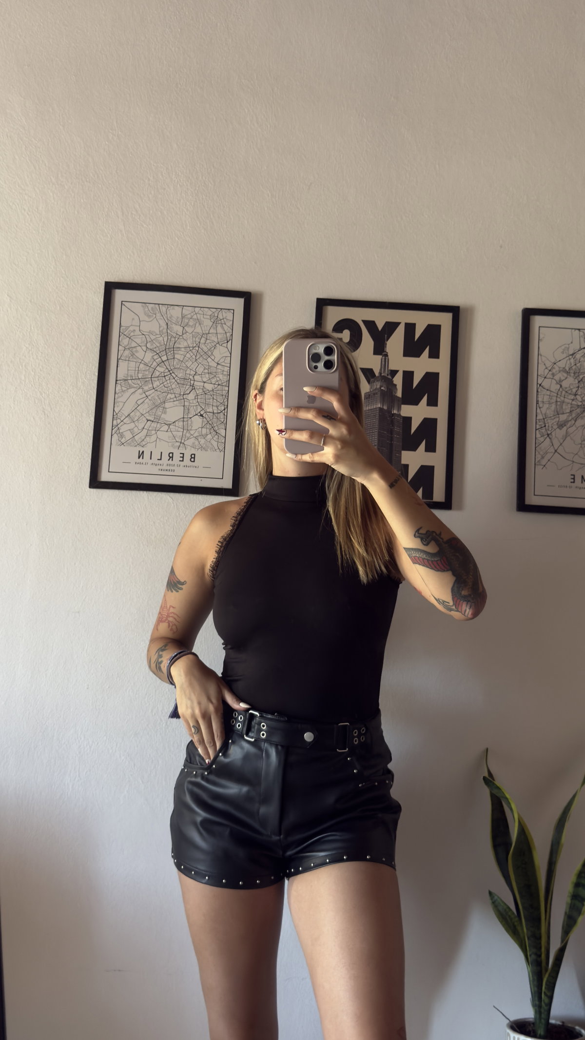 short tiro alto, de cuerina con tachas, elastizado. modelo importado, excelente calidad.
