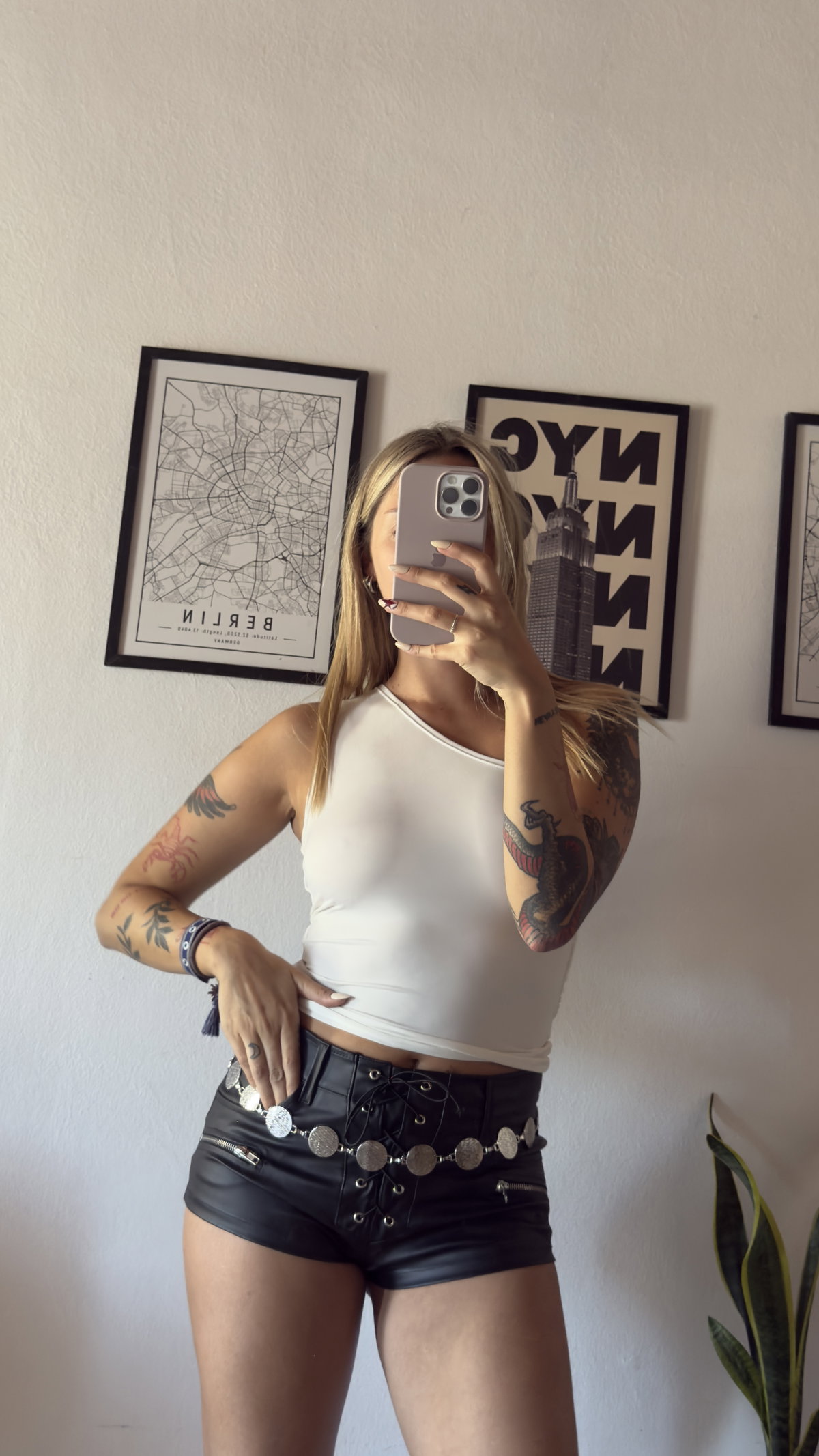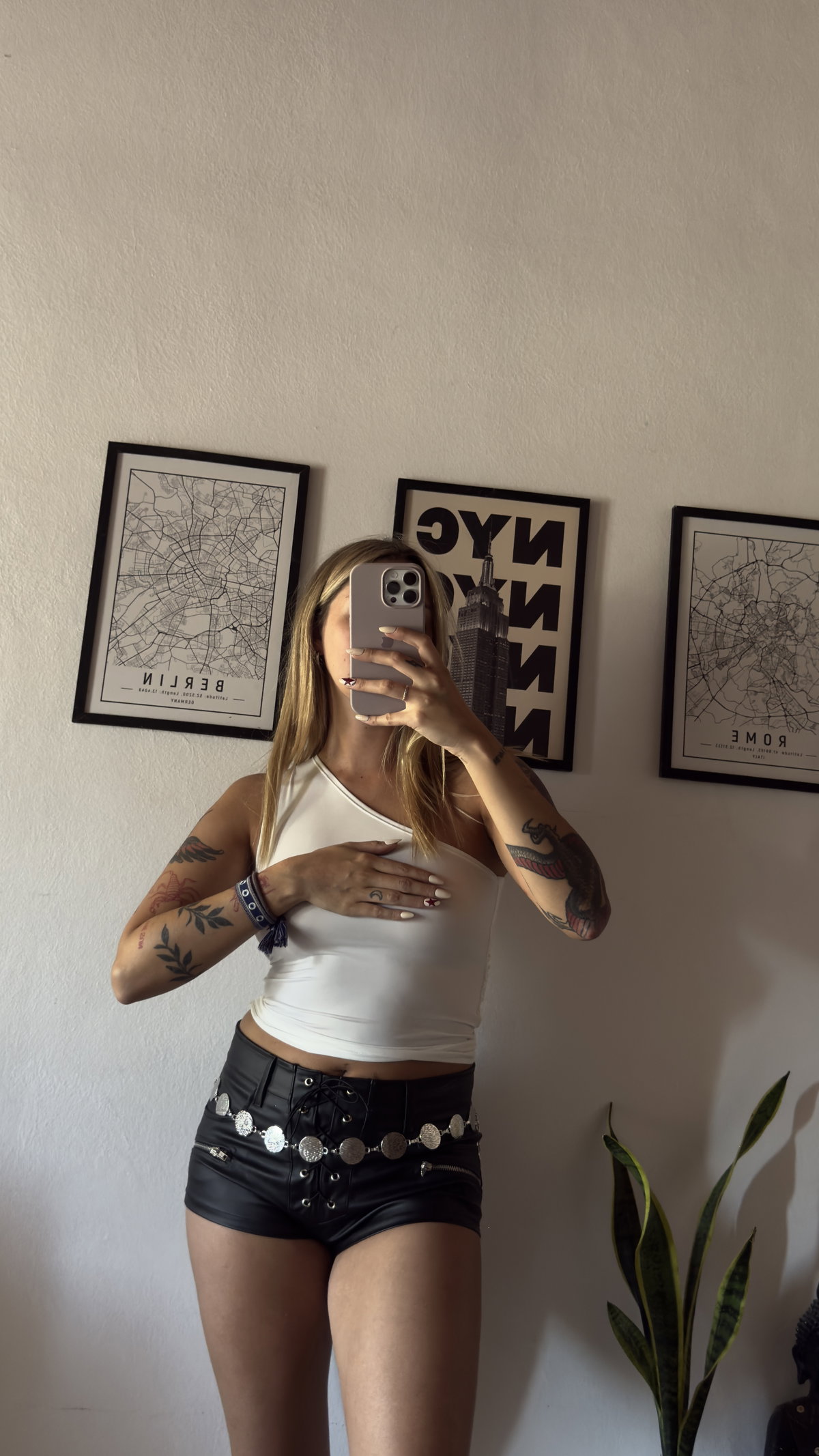 Top a un hombro forrado, de microfibra (tipo seda), a la cintura. talle unico aprox