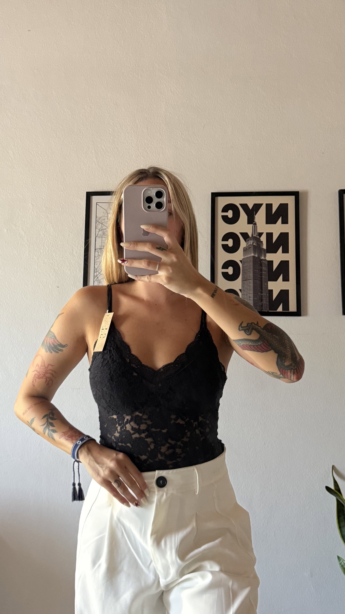 Body de encaje, con puntilla en el escote. no trae ganchitos abajo. talle unico, va para S/M