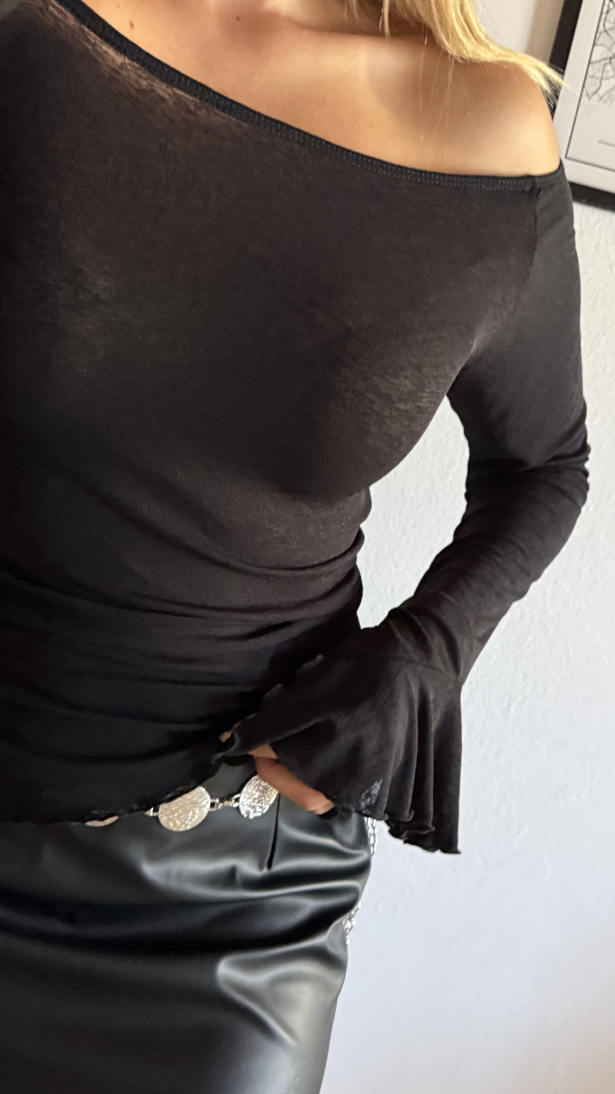 Camiseta con escote paisana, manga oxford irregular. larga a la cadera