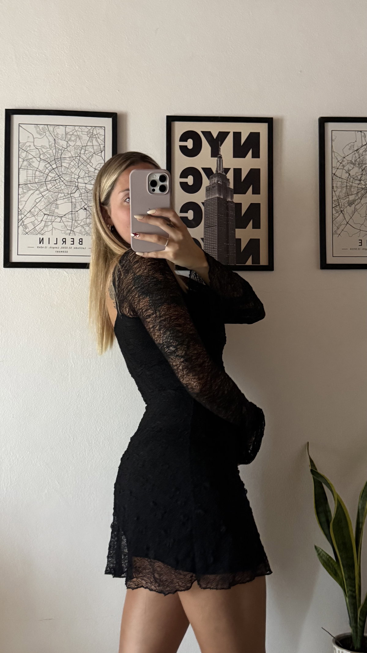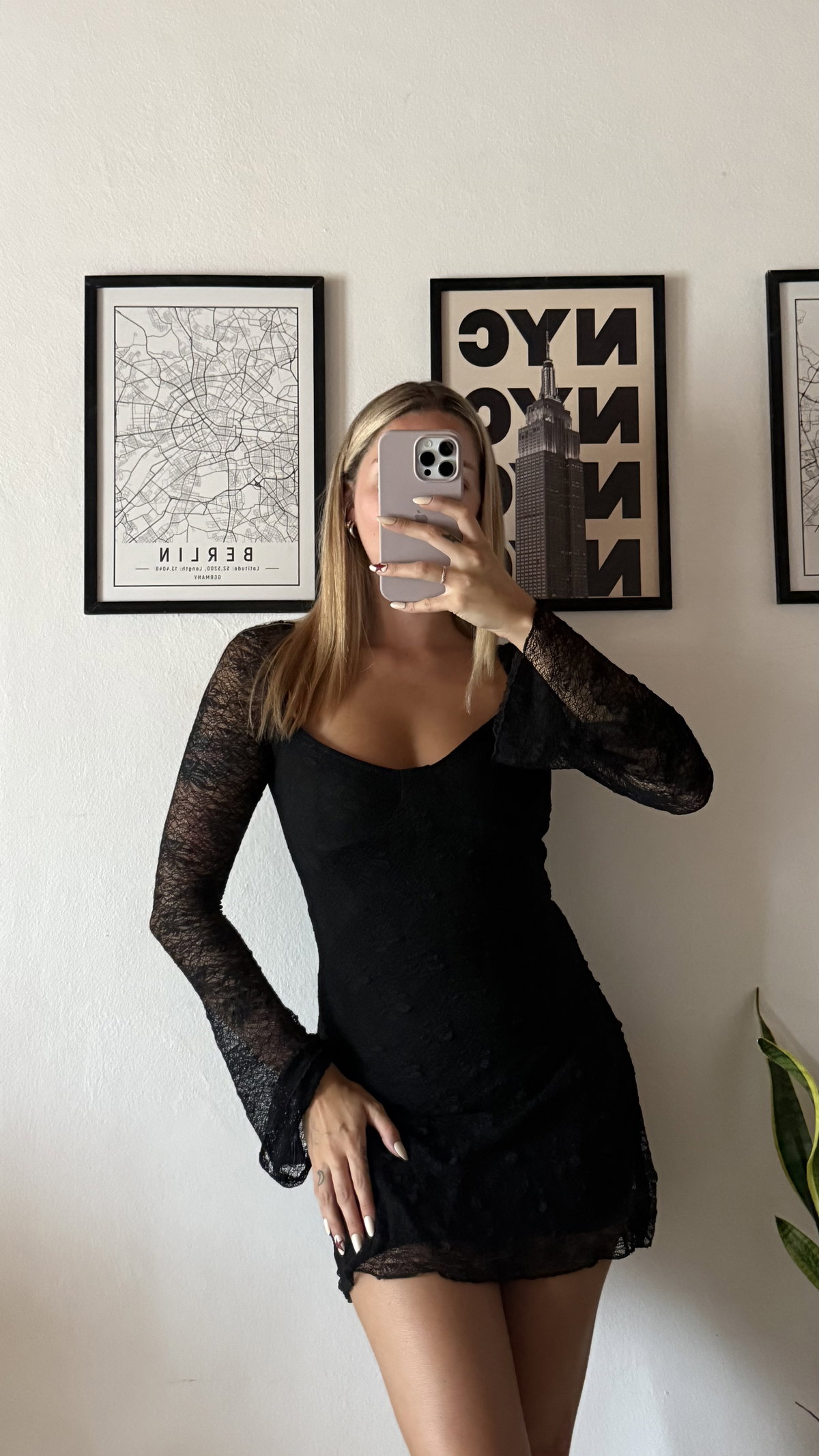 vestido corto de encaje con forro, elastizado. talle unico, aprox