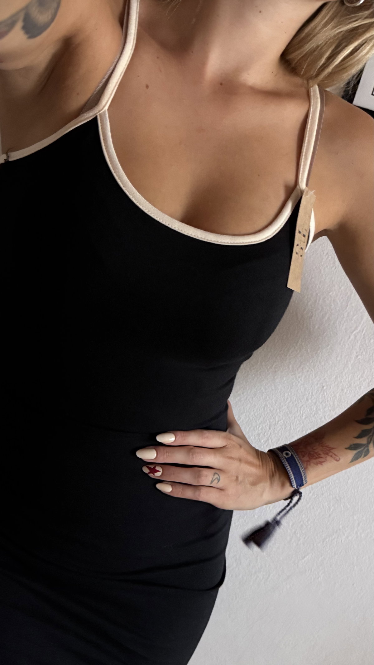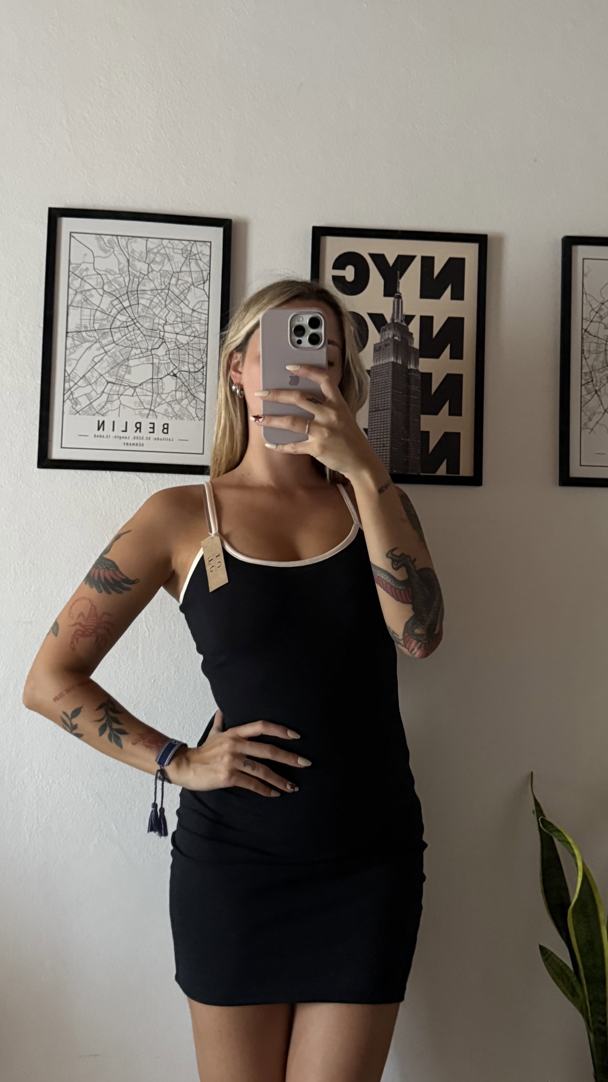 vestido corto de algodon, combinado. es elastizado. talle unico, aprox