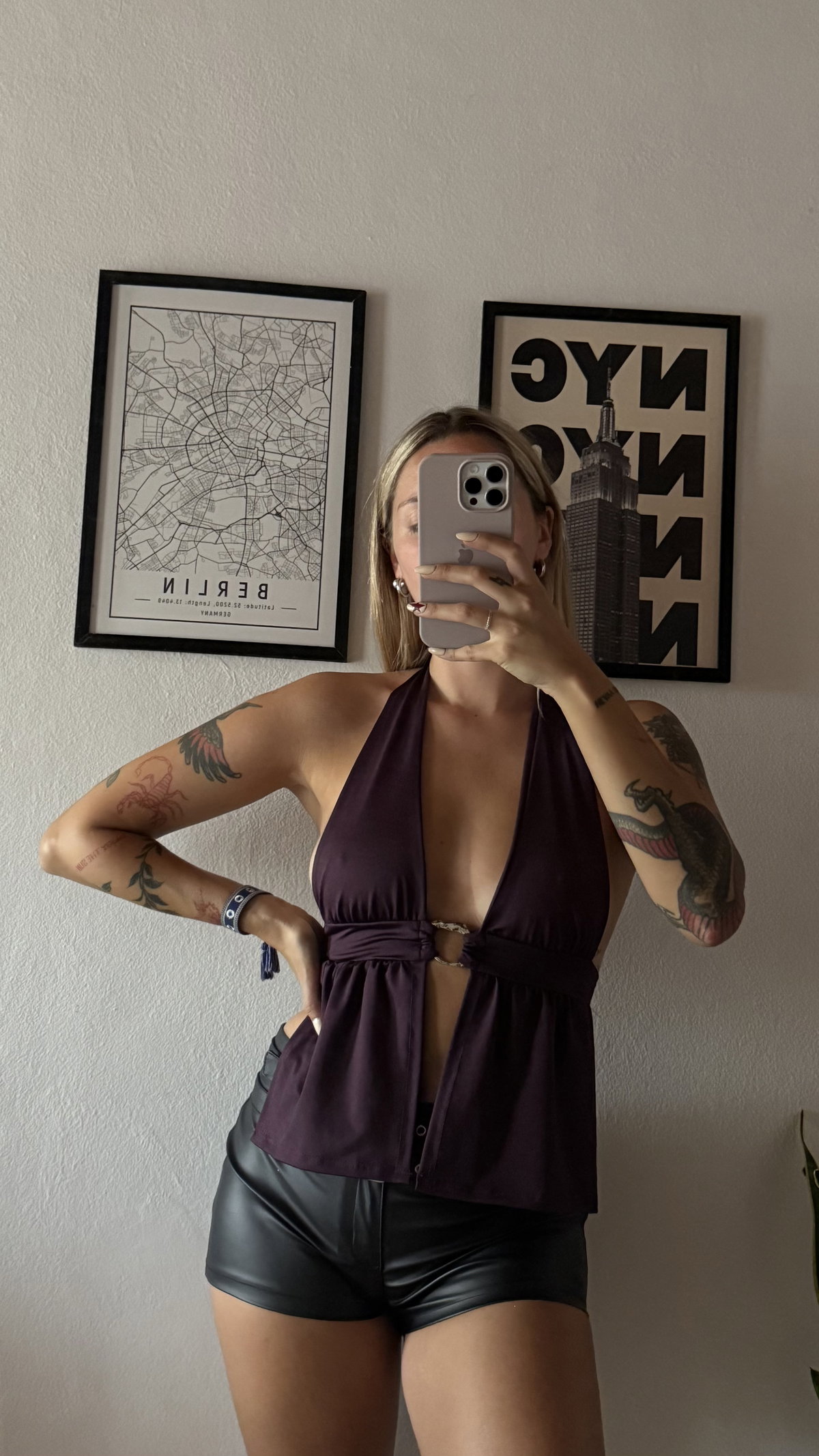 Top de microfibra con forro en el frente, hebilla de metal. talle unico, aprox