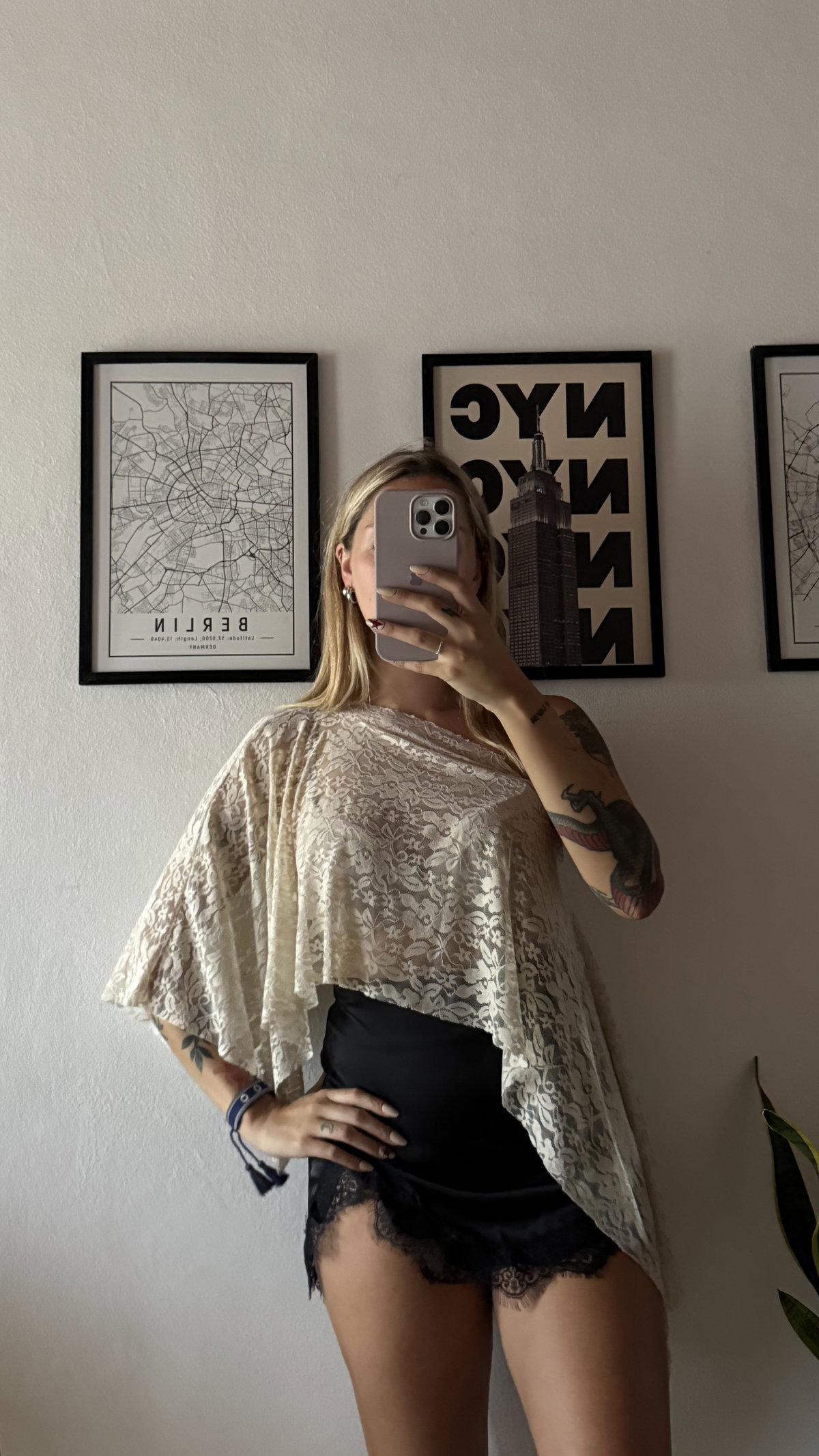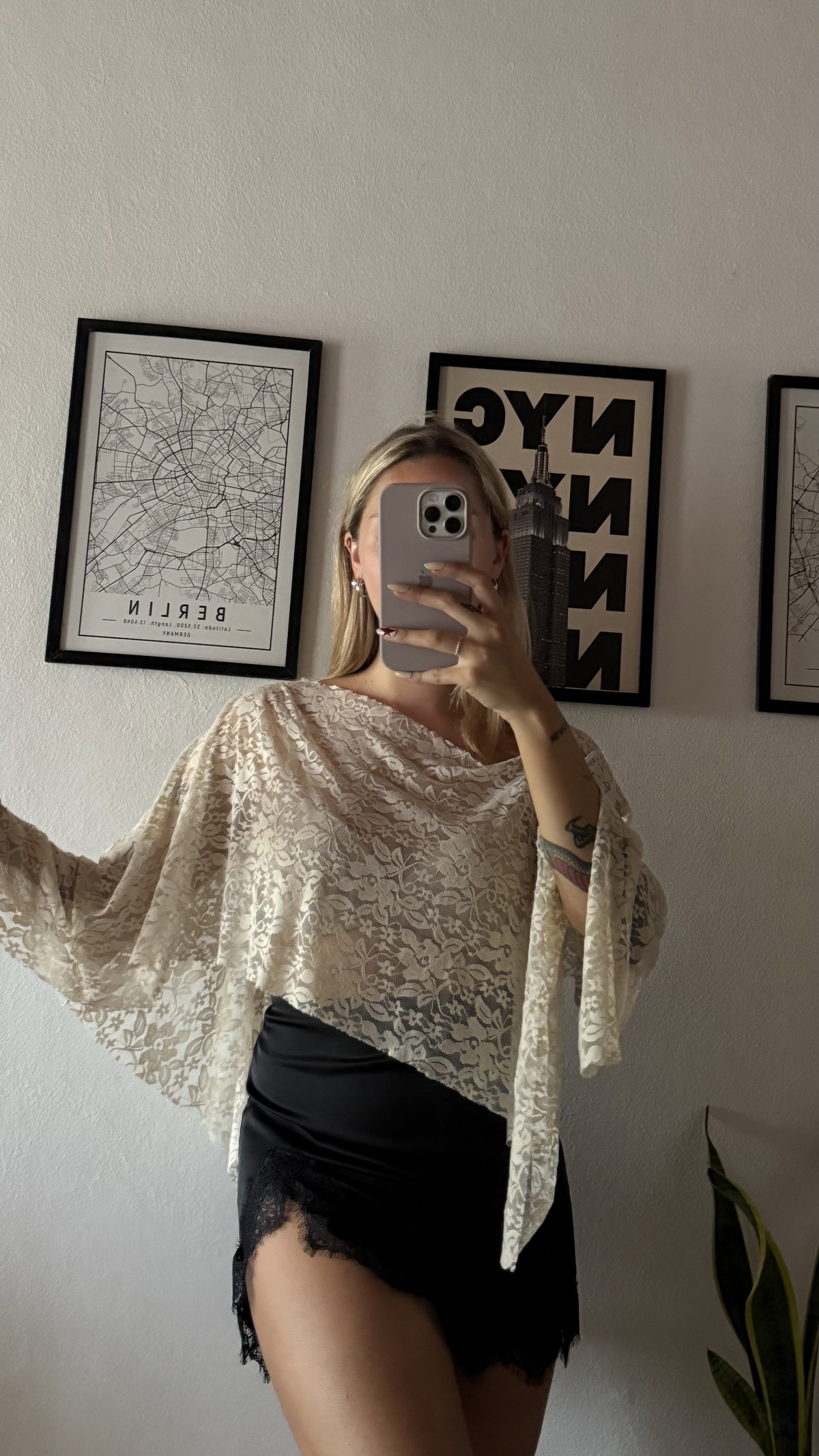 remera tipo capa, de encaje (suave). elastizado. talle unico, se adapta hasta un