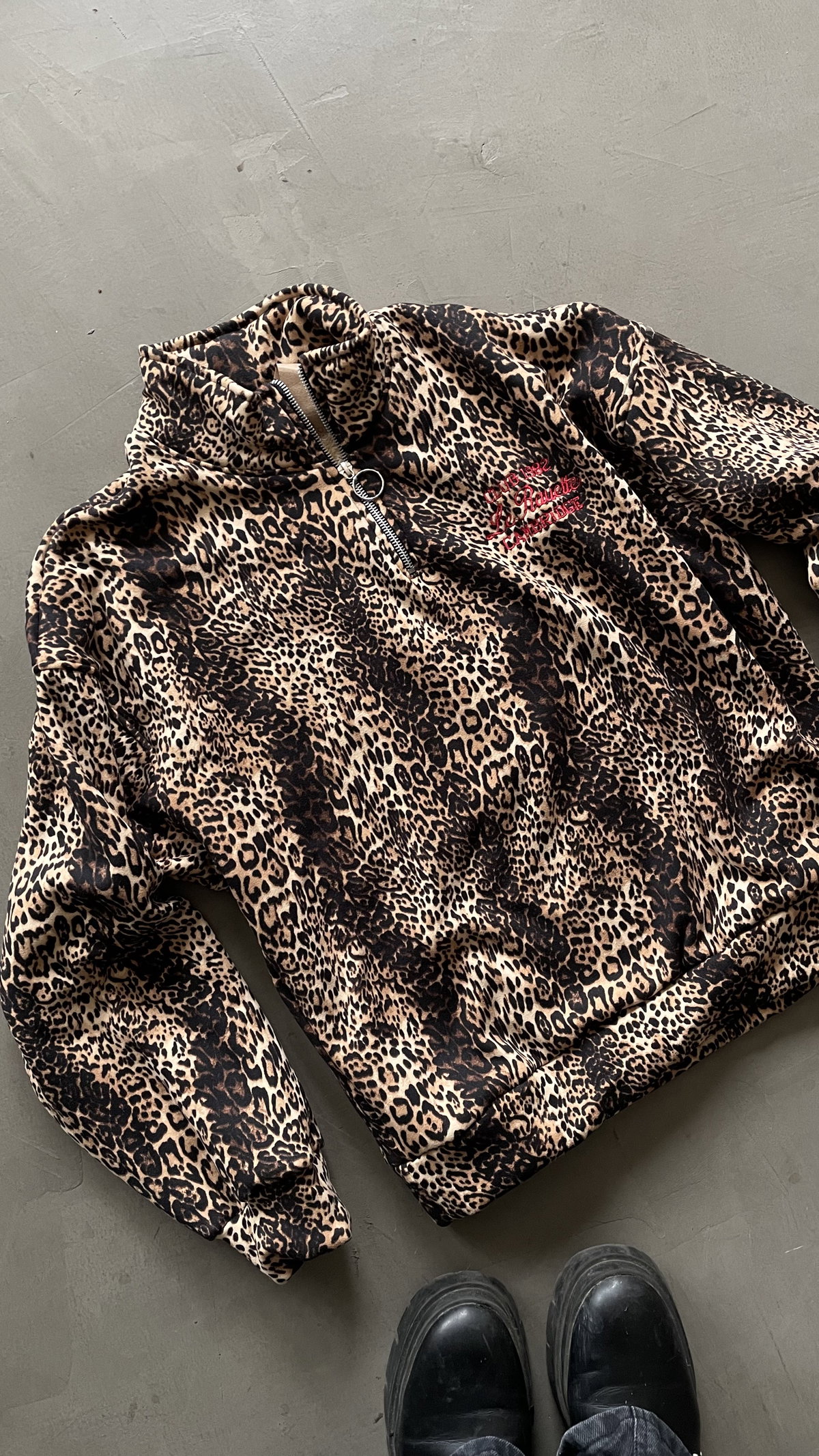 Buzo animal print forrado con peluche. tiene cierre y bordado en rojo. talleunico (Abarca del S al XL)
