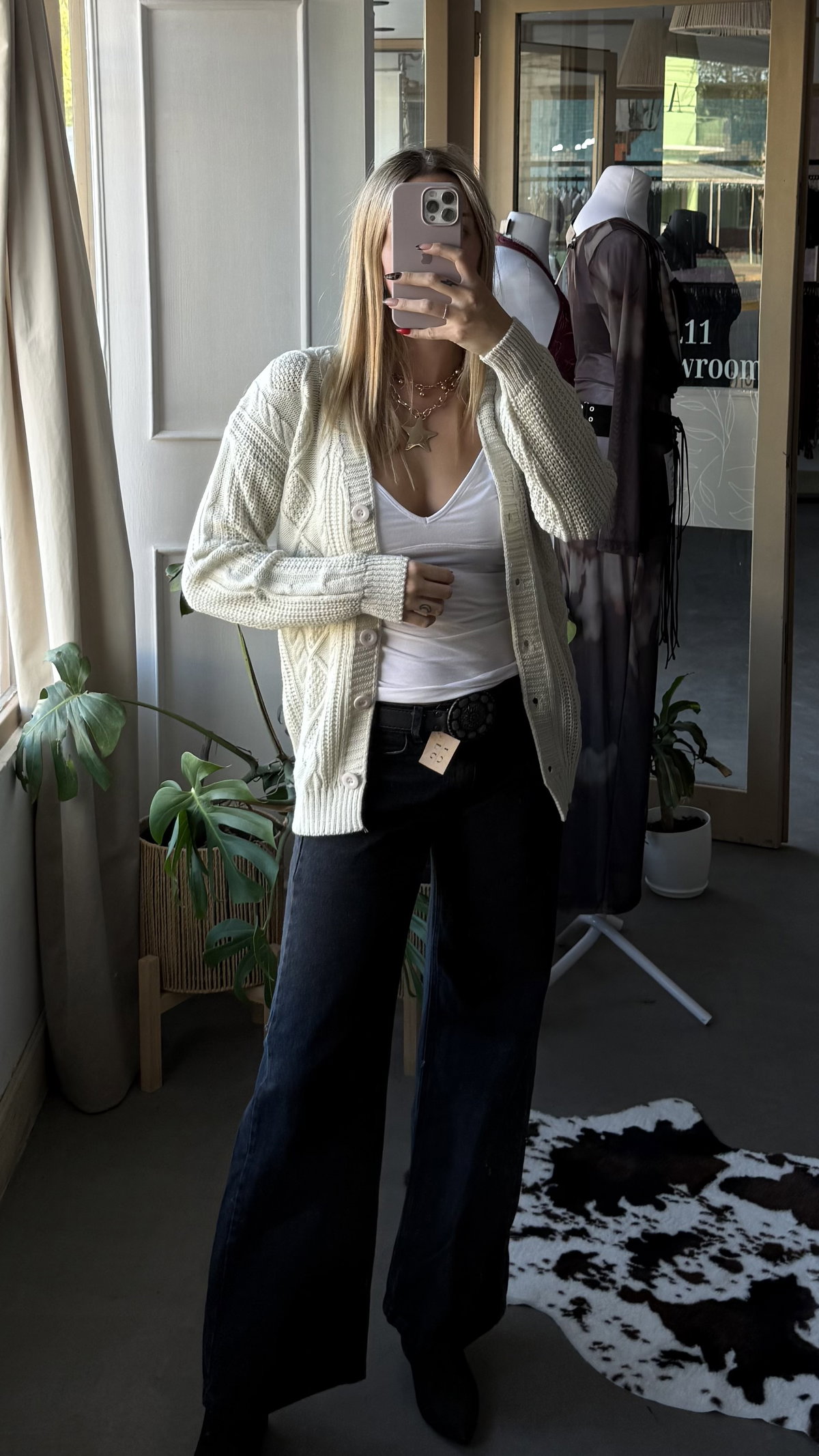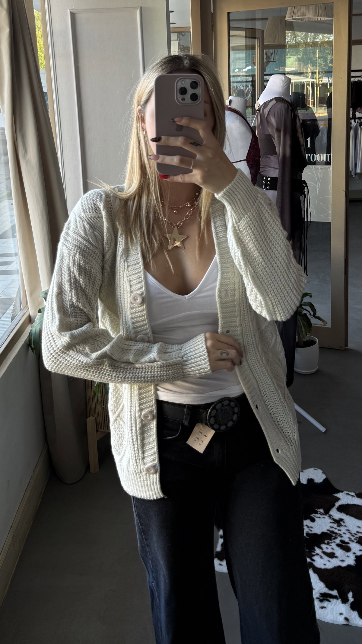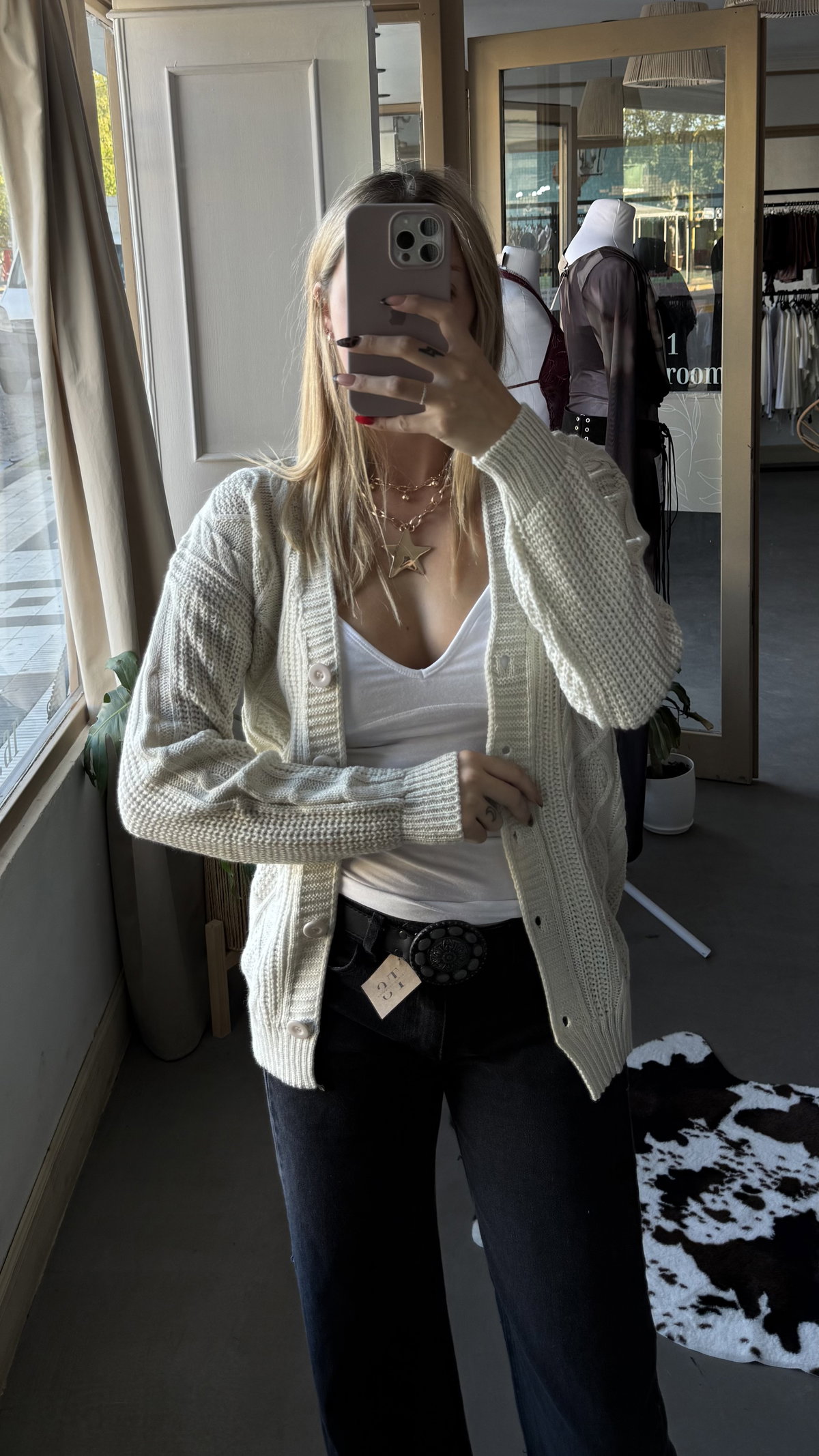 Saco largo de hilo acrilico (liviano), con botones. elastizado, largo debajo de la cadera. talle unico, va hasta un M (abierto abarca un poco mas).
