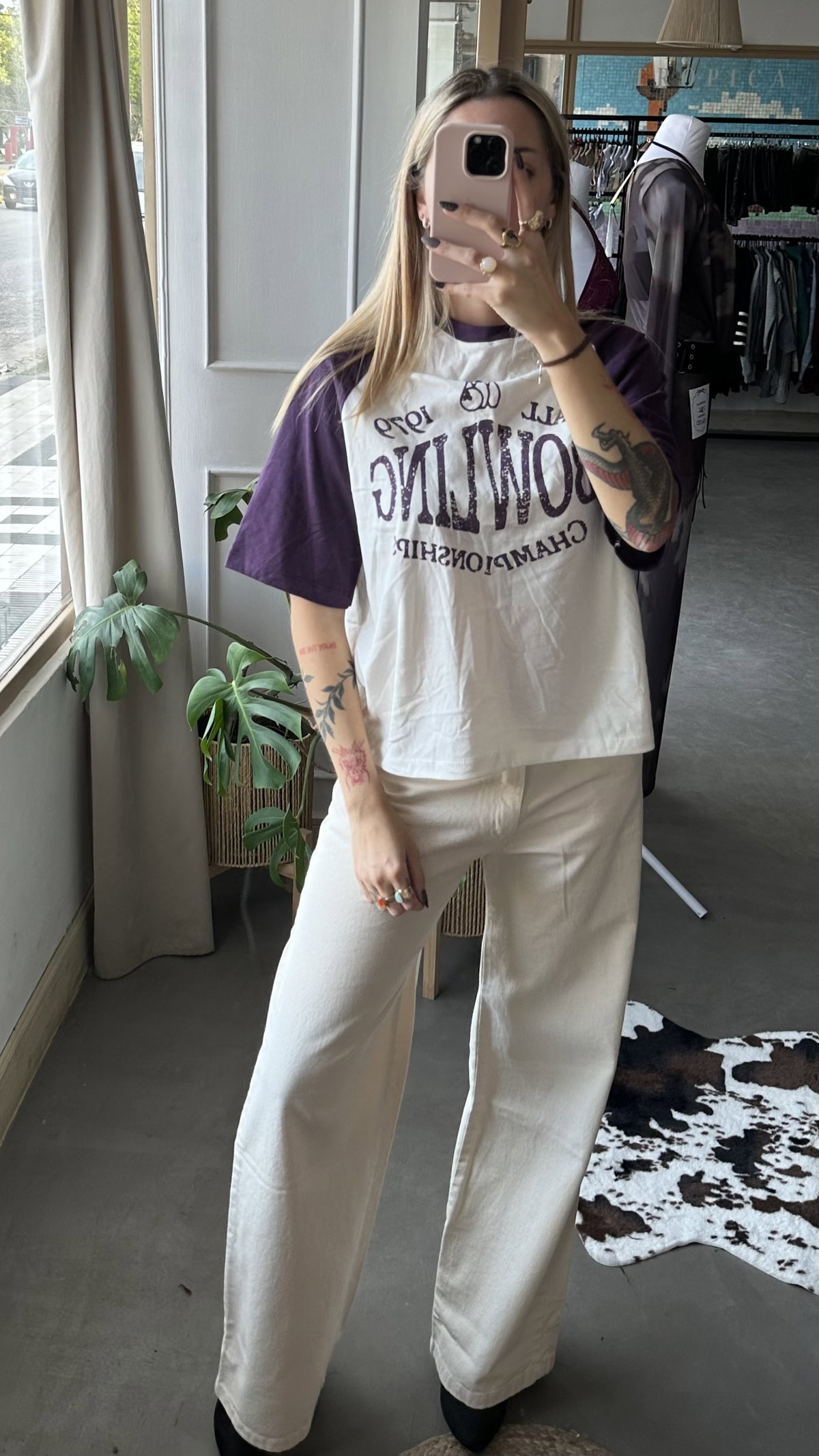 Remera manga corta, de morley ribb. con estampa a tono. elastizada, larga a la cadera. modelo over/boxy.