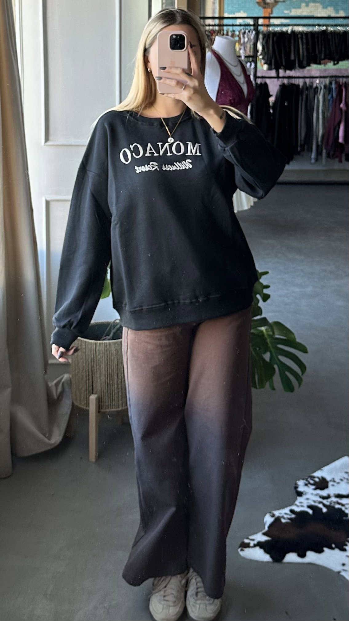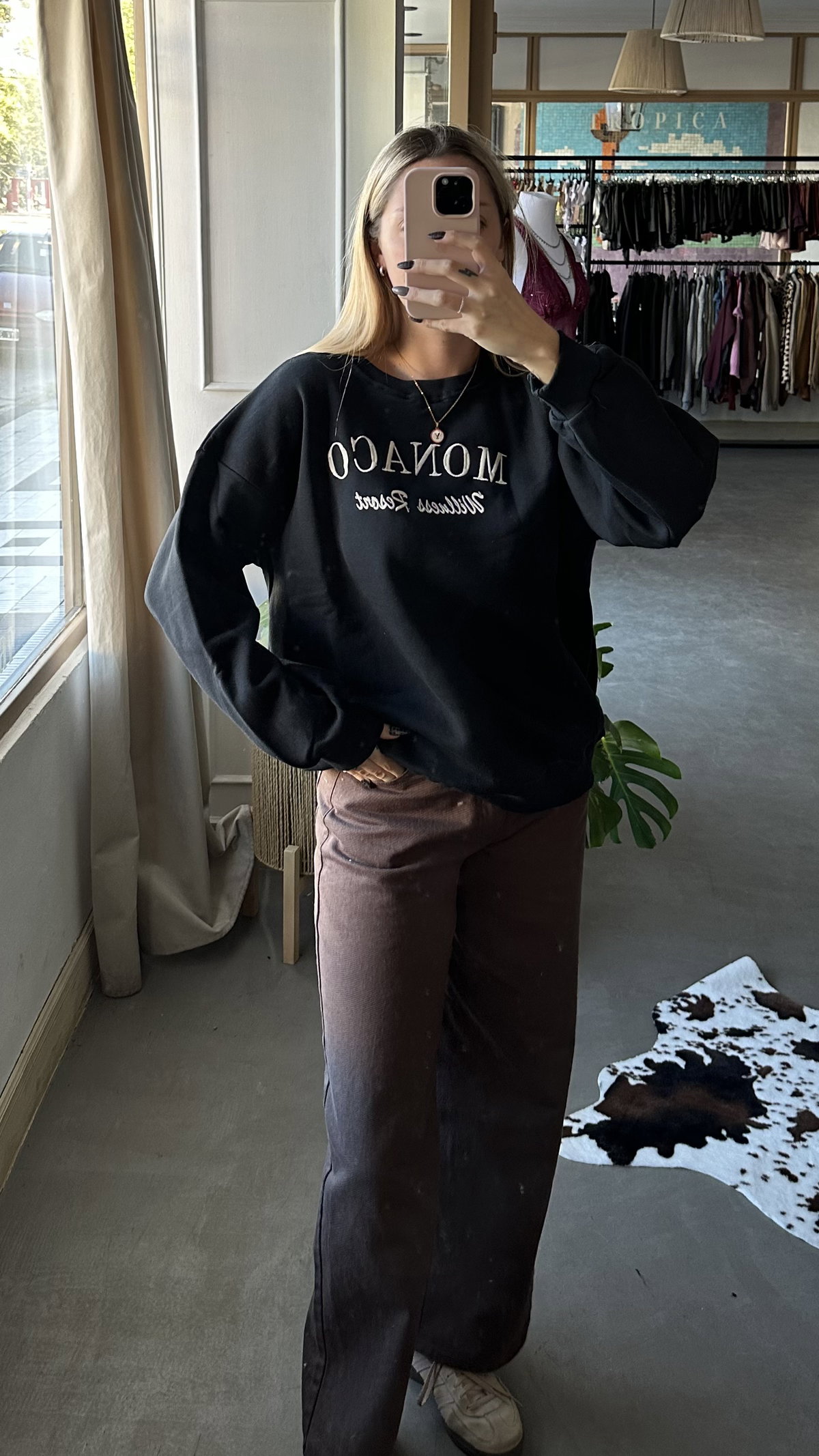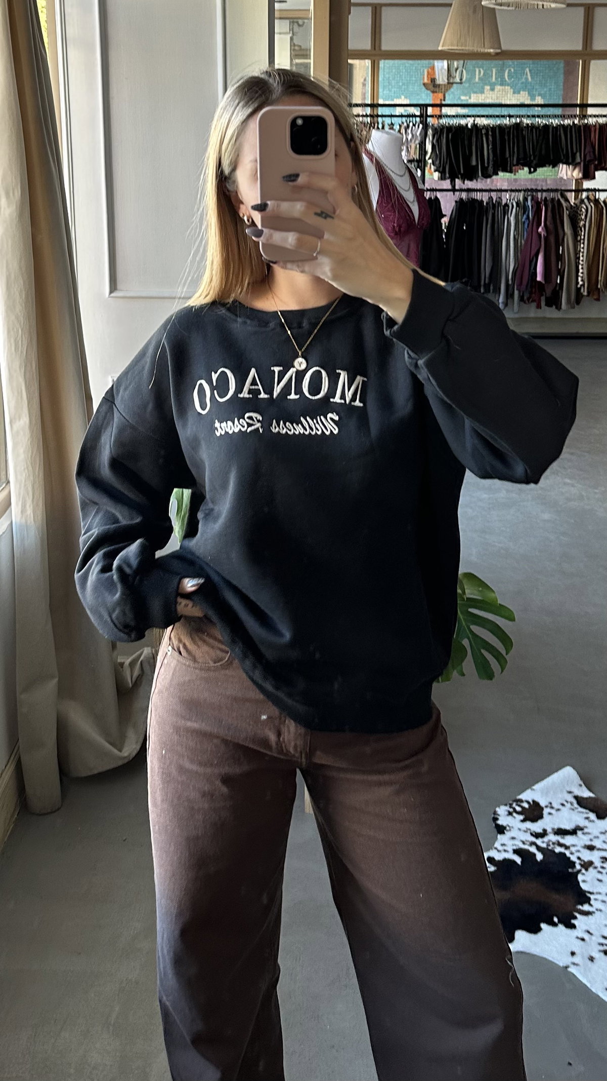 Buzo frizado con bordado en el frente, de algodon. modelo over, largo a la cadera, talle unico va hasta un XL.