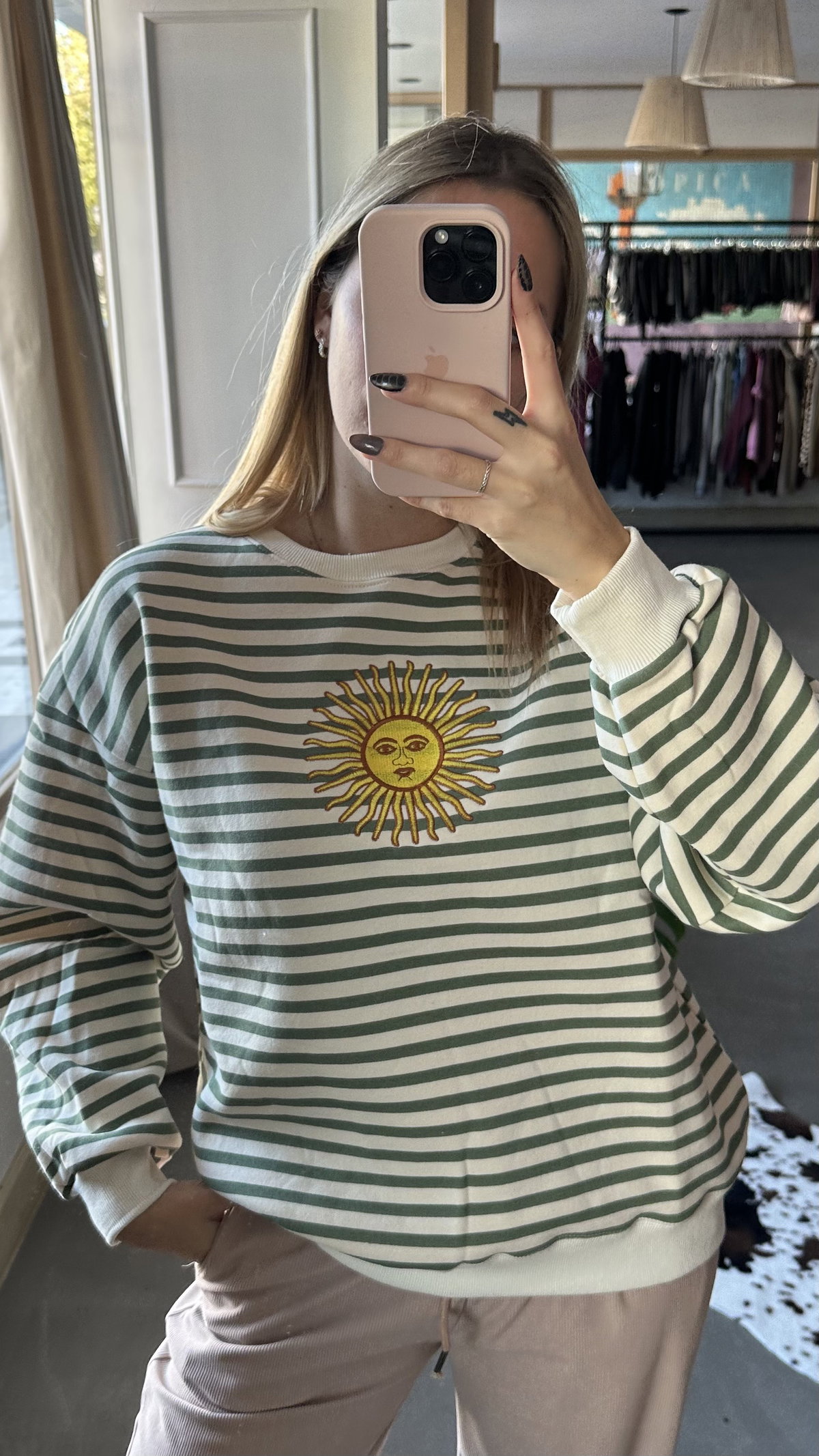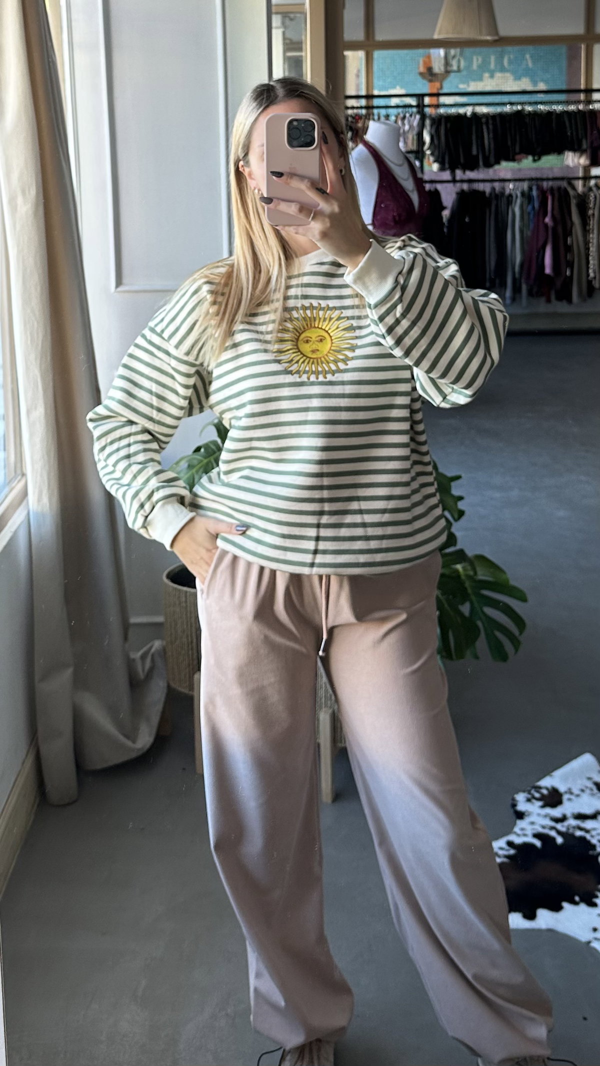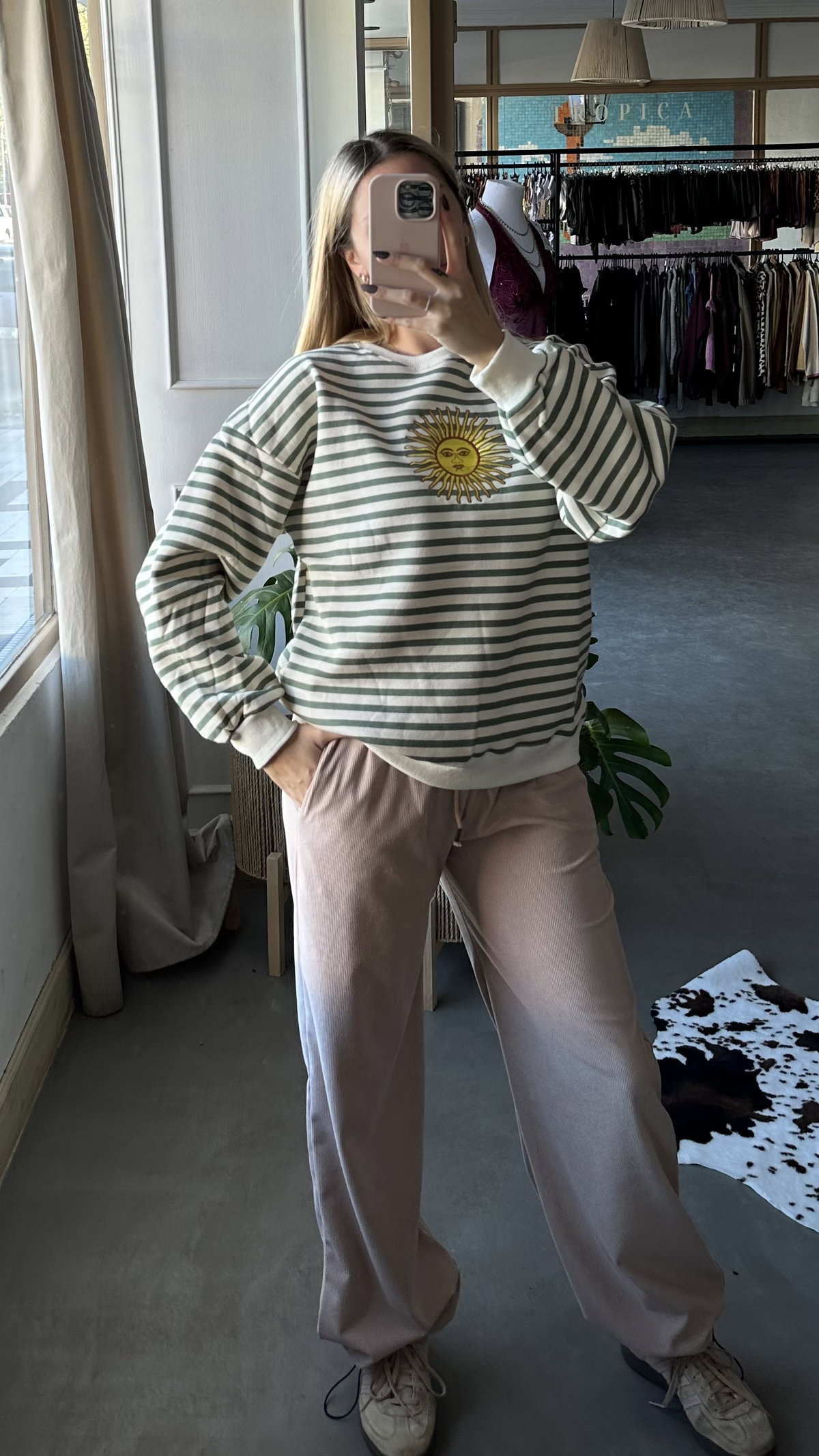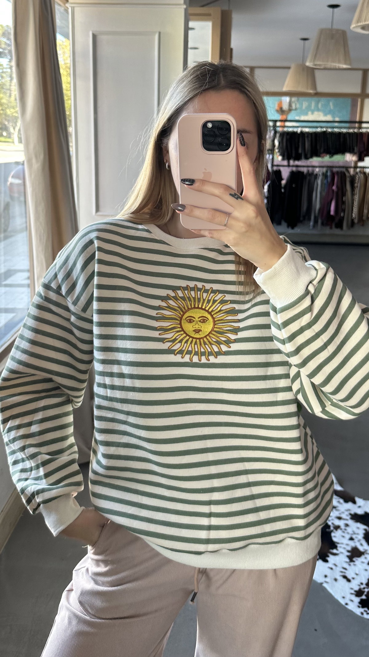 Buzo de algodon frizado, con bordado en el frente. modelo over, largo a la cadera, con puños. Talle unico, se adapta hasta un XL.