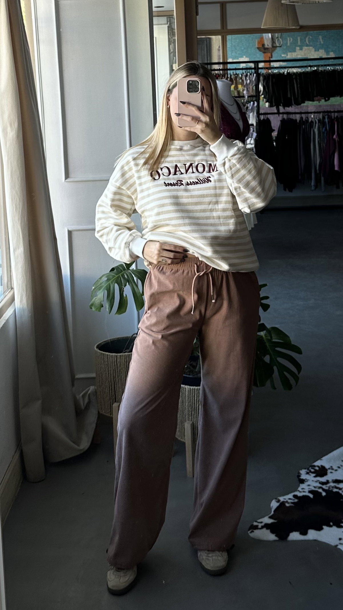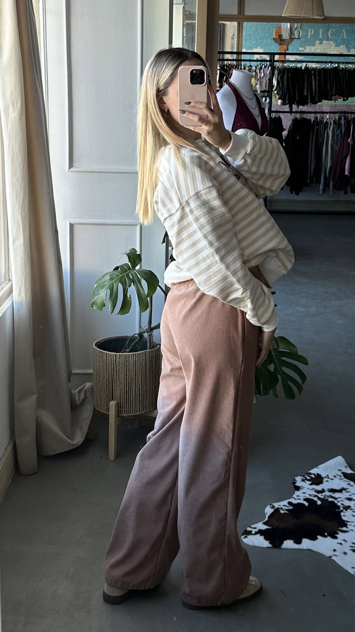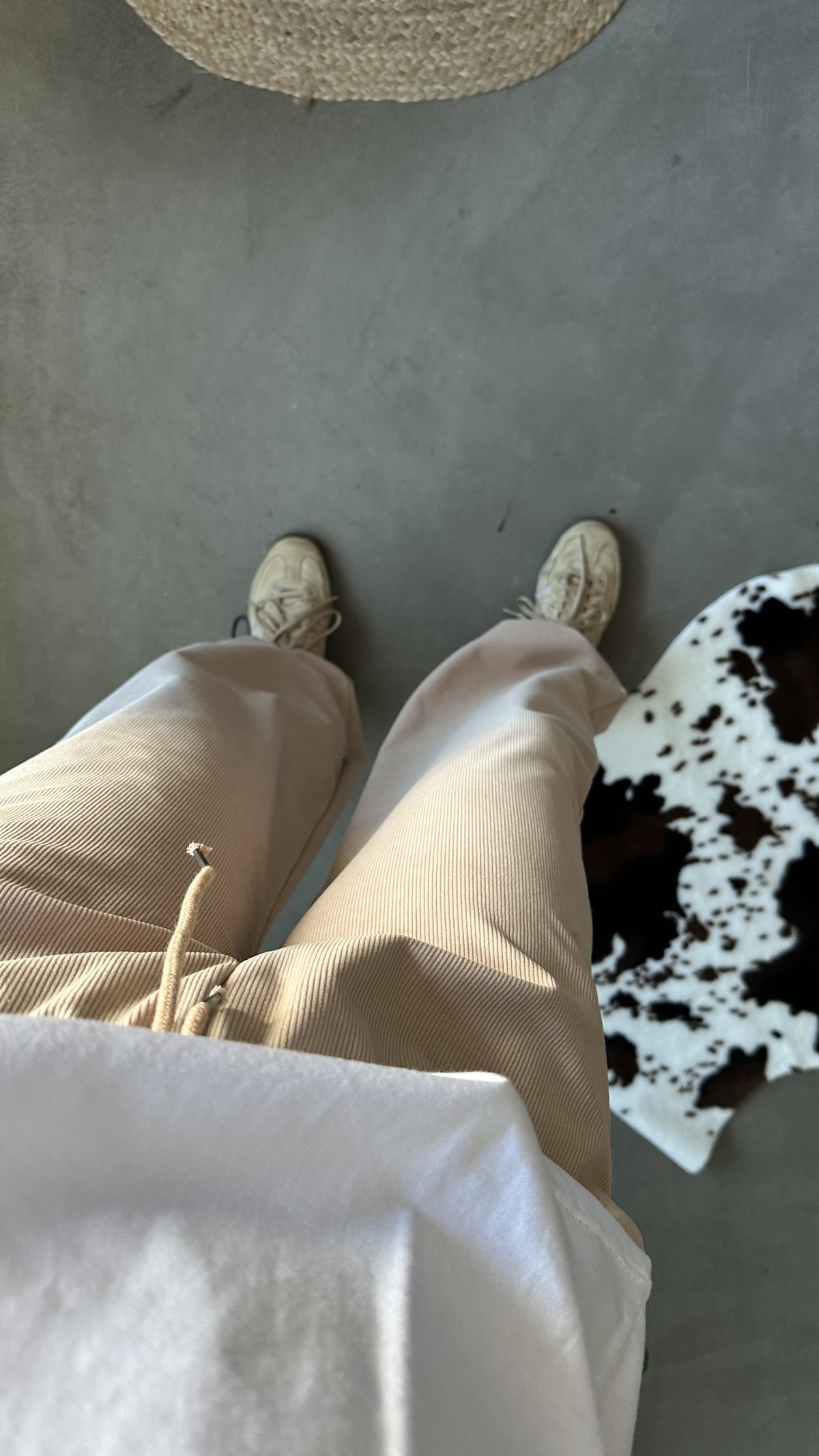 pantalon recto de corderoy fino con puño regulable. tiro alto con cintura elastizada.