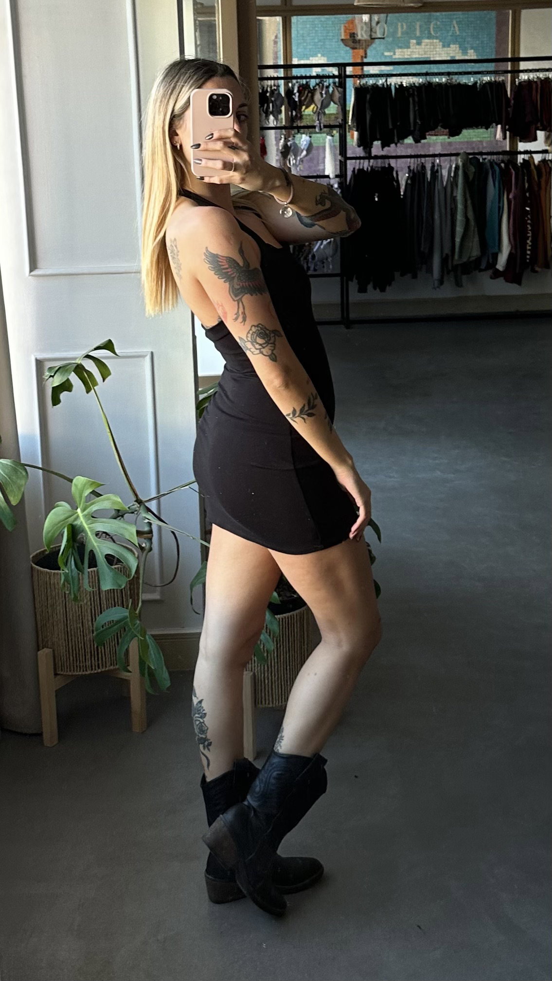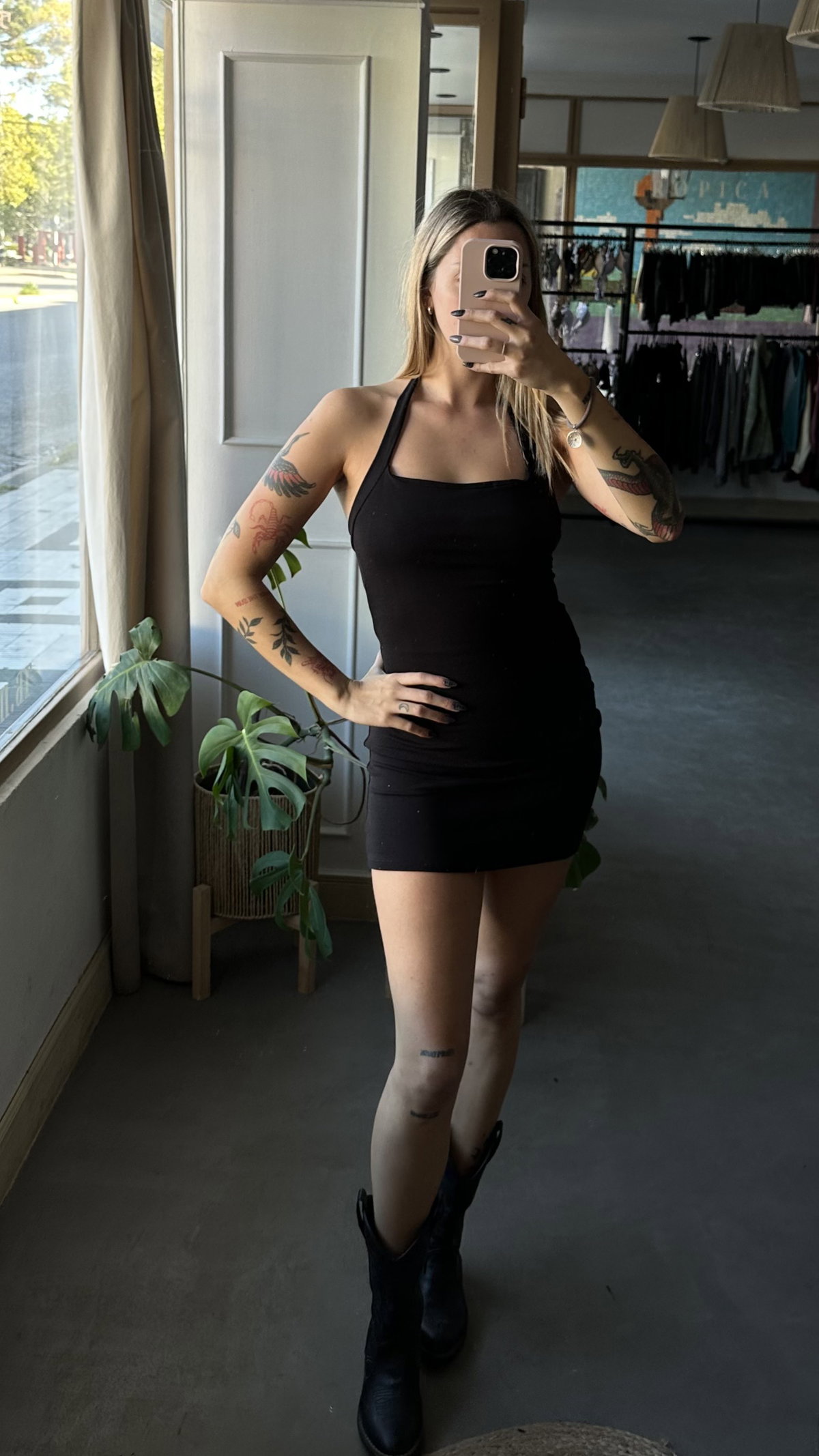 vestido corto de morley ribb. es elastizado. espalda descubierta. los talles vienen mas vien amplios.