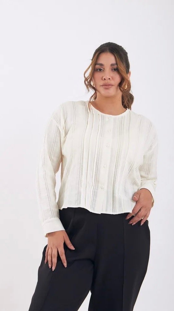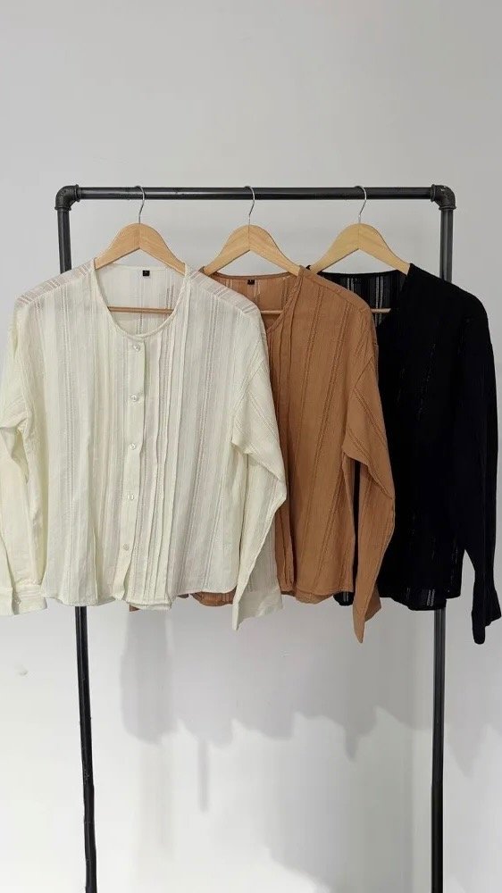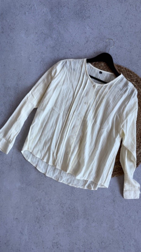 Camisa combinada de lino con guarda, la tela es livana con caida. larga a la cadera aprox