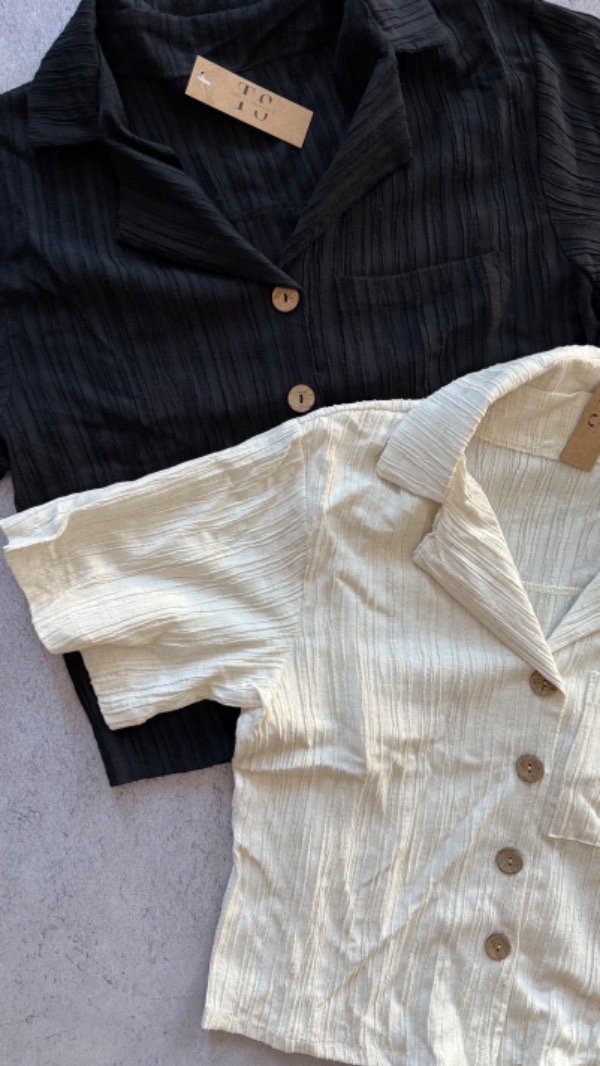 Camisa simil lino rayado, liviana con caida. larga a la cadera. talle unico, aprox M