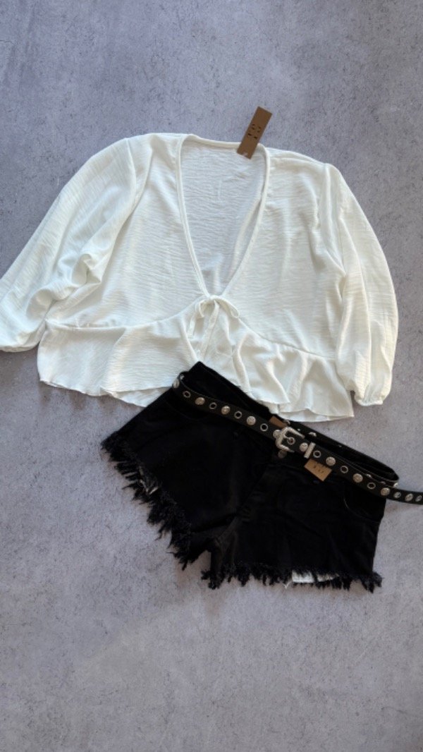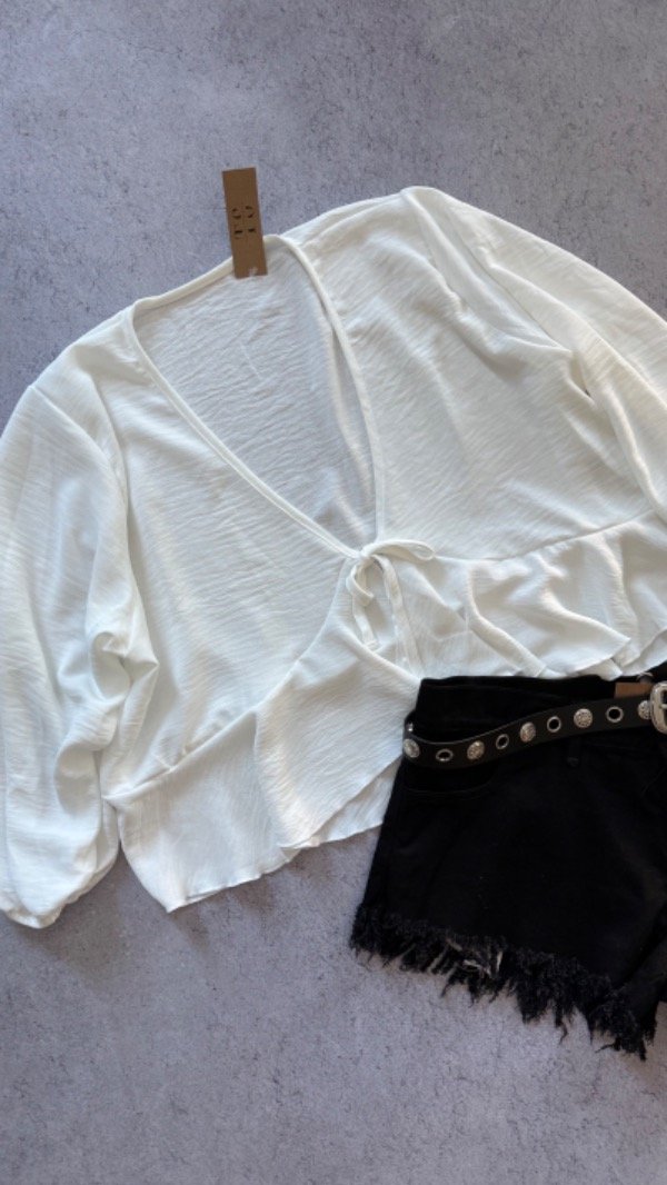 blusa de gasa abierta para atar adelante. tela liviana con caida