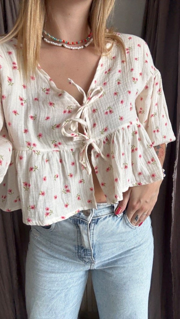 blusa de baby cotton (simil bambula) con abertura en el frente, la tela es liviana con caida. modelo sueltito, largo a la cintura aprox.