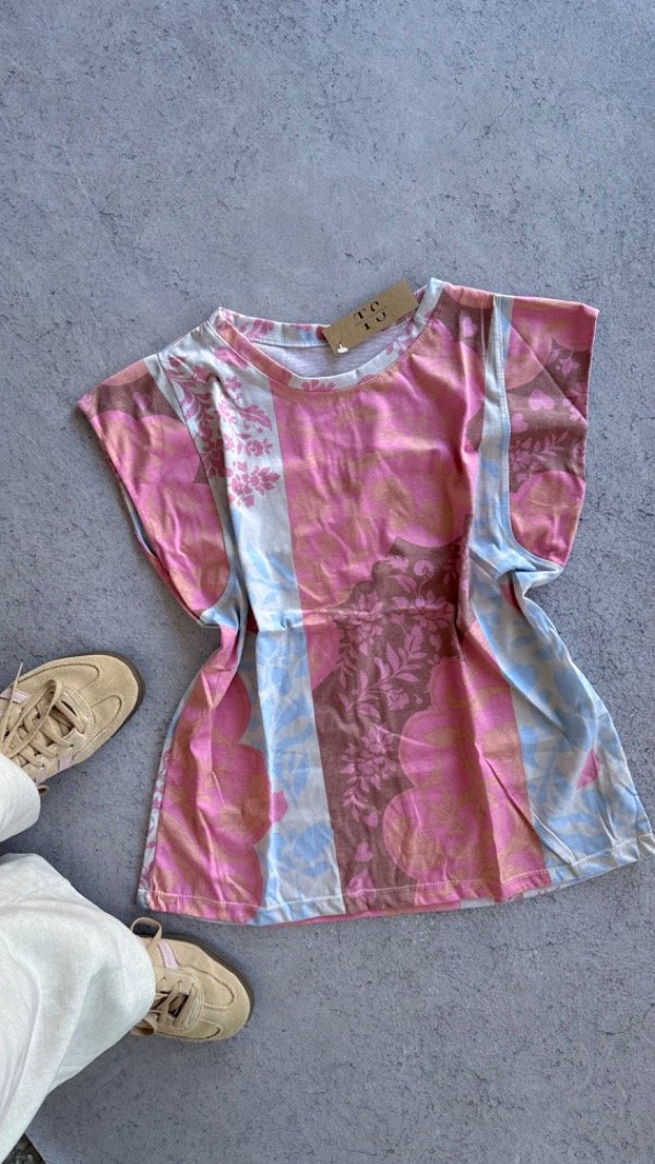 musculosa de jersey estampada. talle unico, se adapta de un S un L. larga a la cadera
