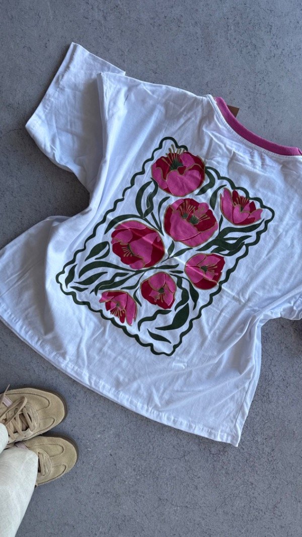 remera de jersey estampada. talle unico, se adapta de un S un XXL. larga a la cadera