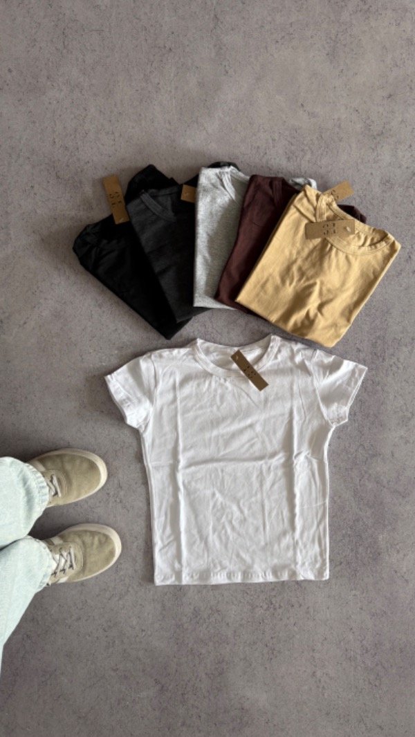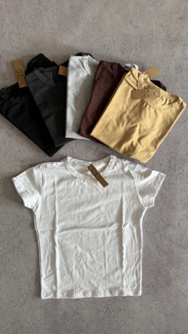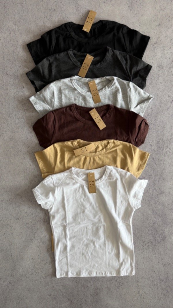 Remera lisa de algodon. elastizada, es arriba de la cadera. talle unico, aprox S/M