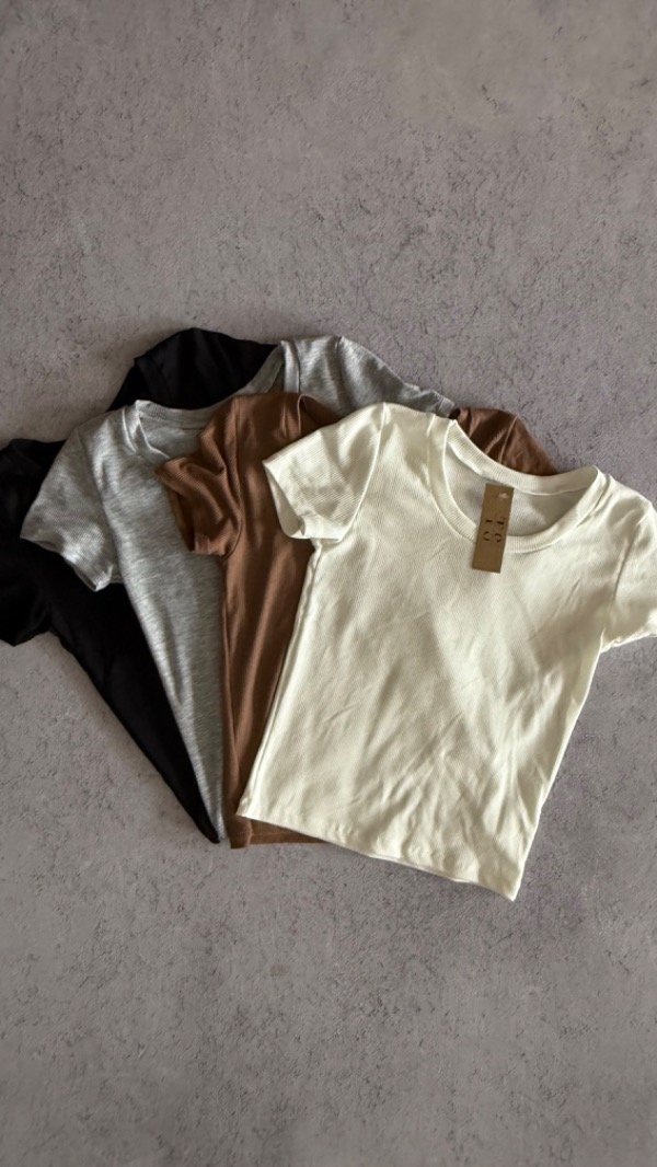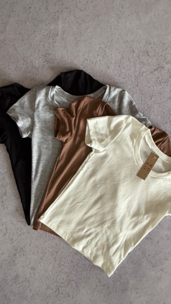 Remera manga corta de morley. elastizada, es arriba de la cadera. talle unico, aprox S/M