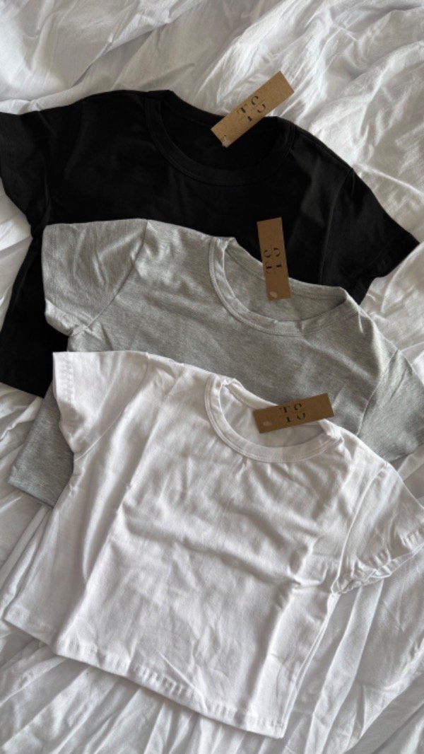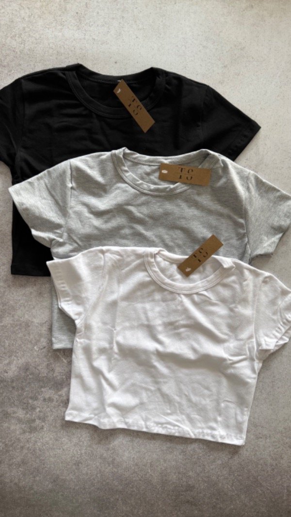 Remera lisa de algodon. elastizada, es corta a la cintura. talle unico, aprox S