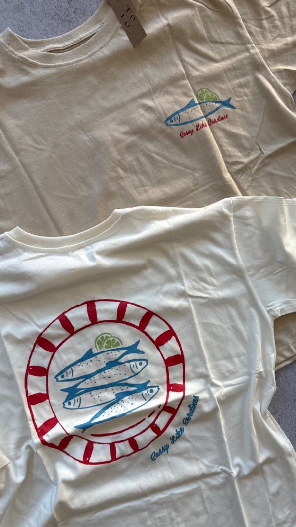 Remera manga corta de jersey con estampa. Talle unico, se adapta hasta un L/XL aprox
