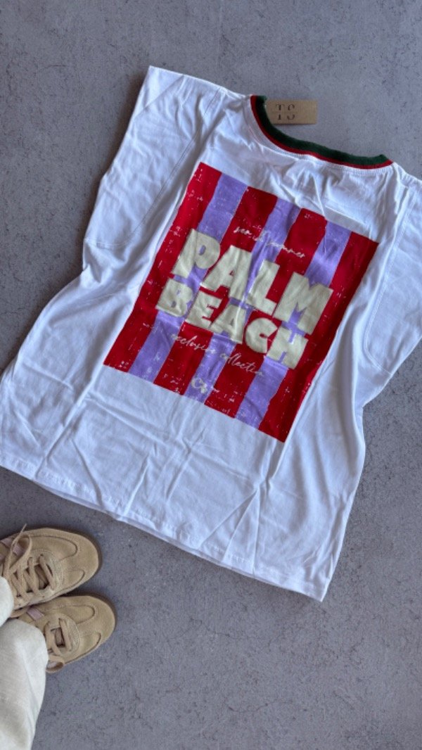 remera de jersey estampada. talle unico, se adapta de un S un L. larga a la cadera