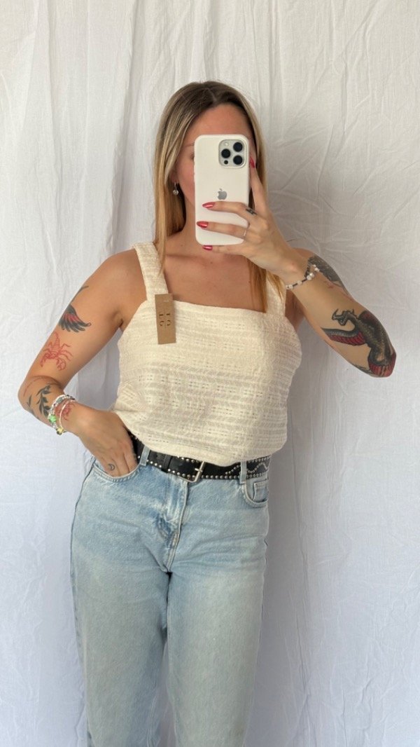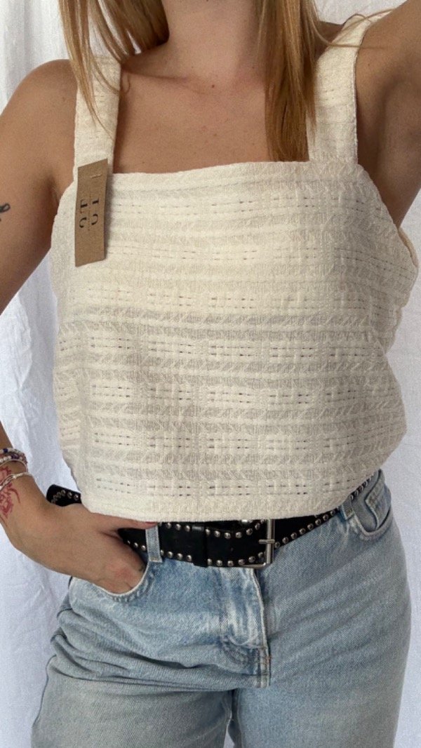 musculosa de hilo, corta a la cintura con breteles anchos.
