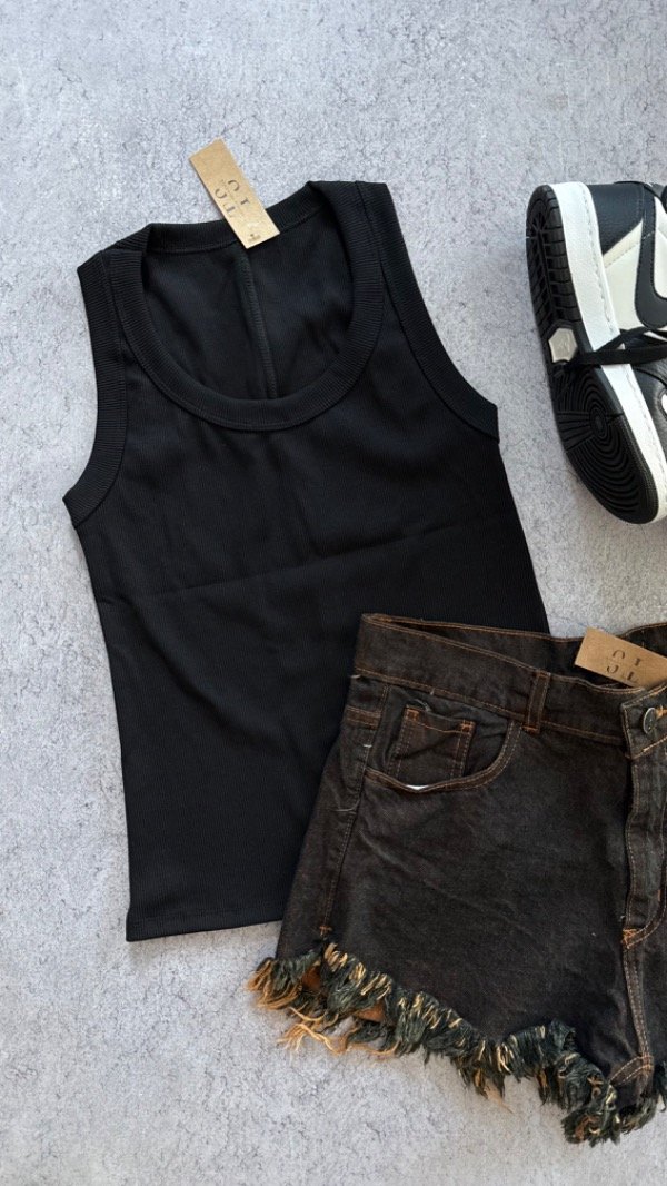 Musculosa de morley con cuello redondo. elastizada, modelo a la cadera aprox