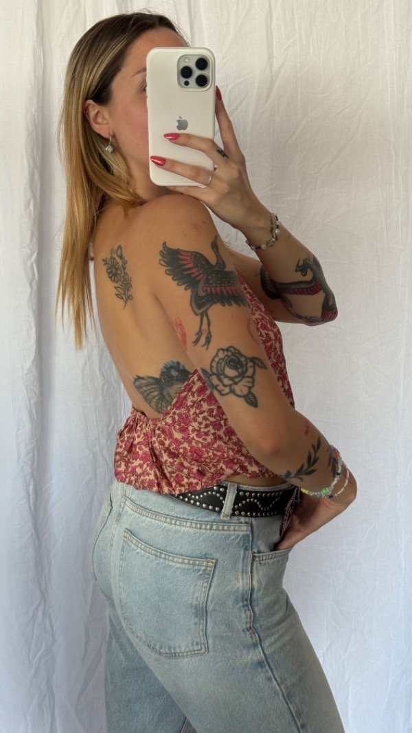 musculosa de gasa estampada, largo arriba de la cadera. talle unico aprox S/M