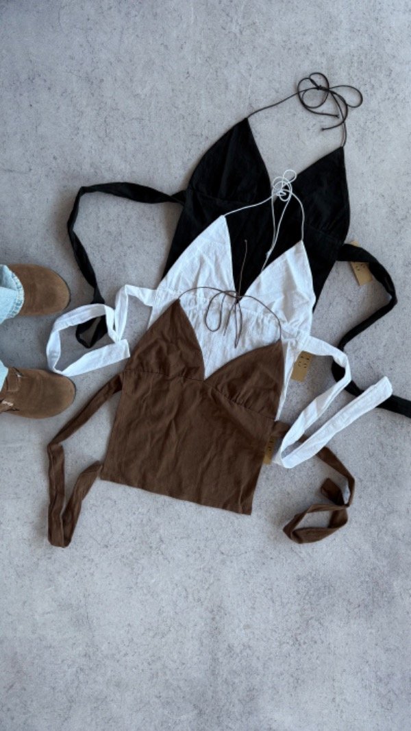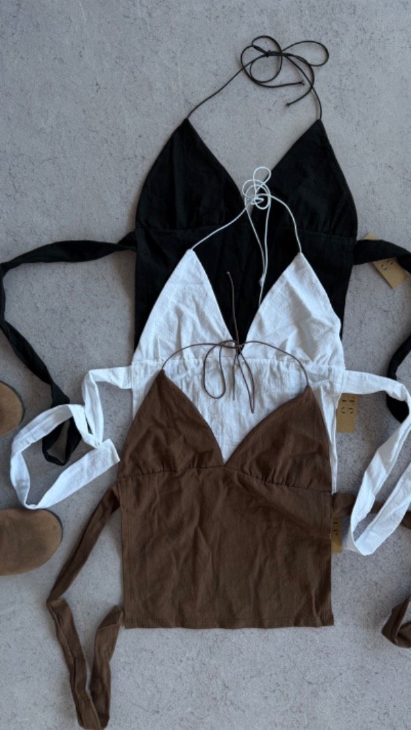 top sin espalda de lino con forro en tazas, se ata en el cuello y atras. talle unico aprox S/M