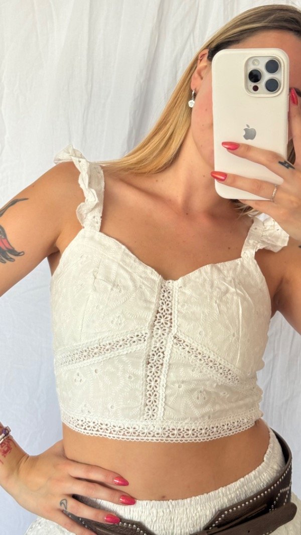 top de brodery combinado con puntilla, espalda elastizada. largo a la cintura aprox. modelo importado