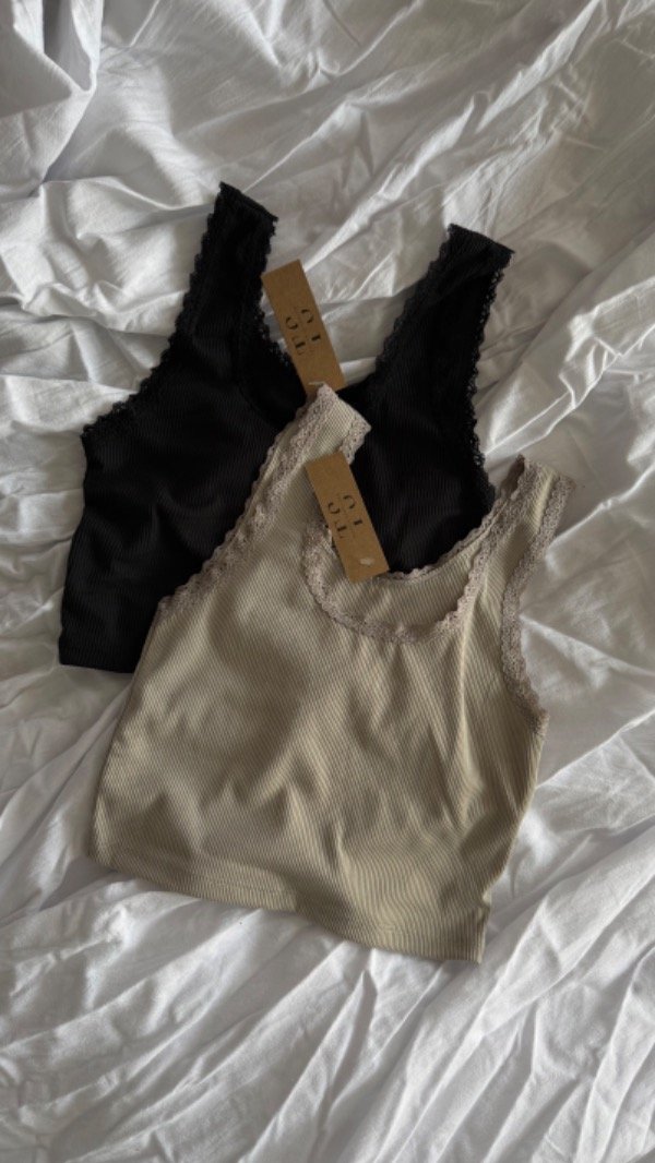top de morley con puntilla. corto a la cintura aprox, es elastizado. talle unico, va para S