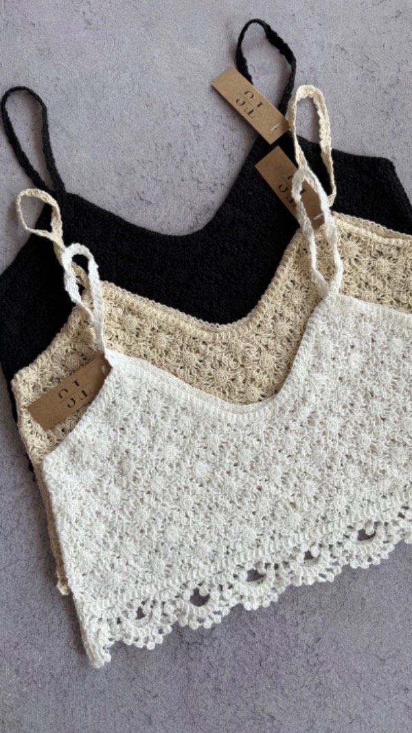 top de hilo con escote cuadrado, corto a la cintura. talle unico aprox M