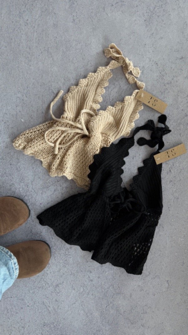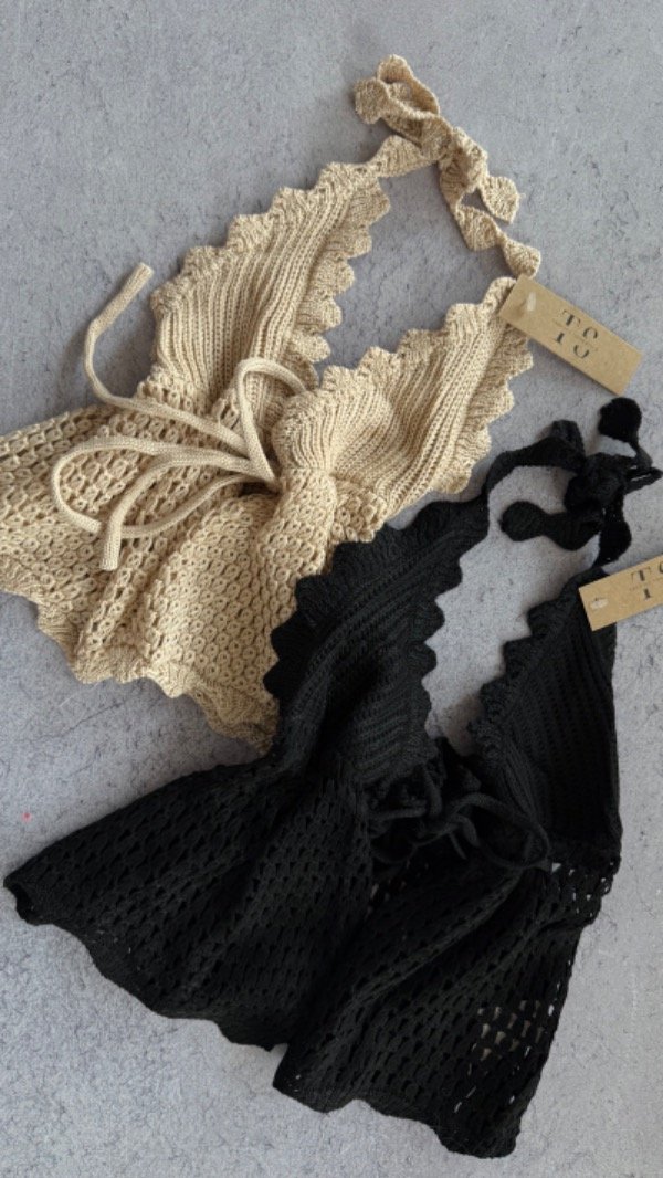 top de hilo con espalda descubierta, corto a la cintura. talle unico aprox S
