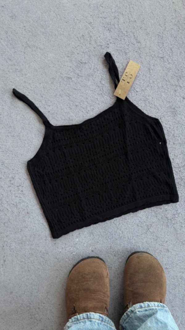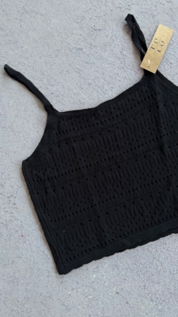 top de crochet calado, corto a la cintura. talle unico aprox S/M
