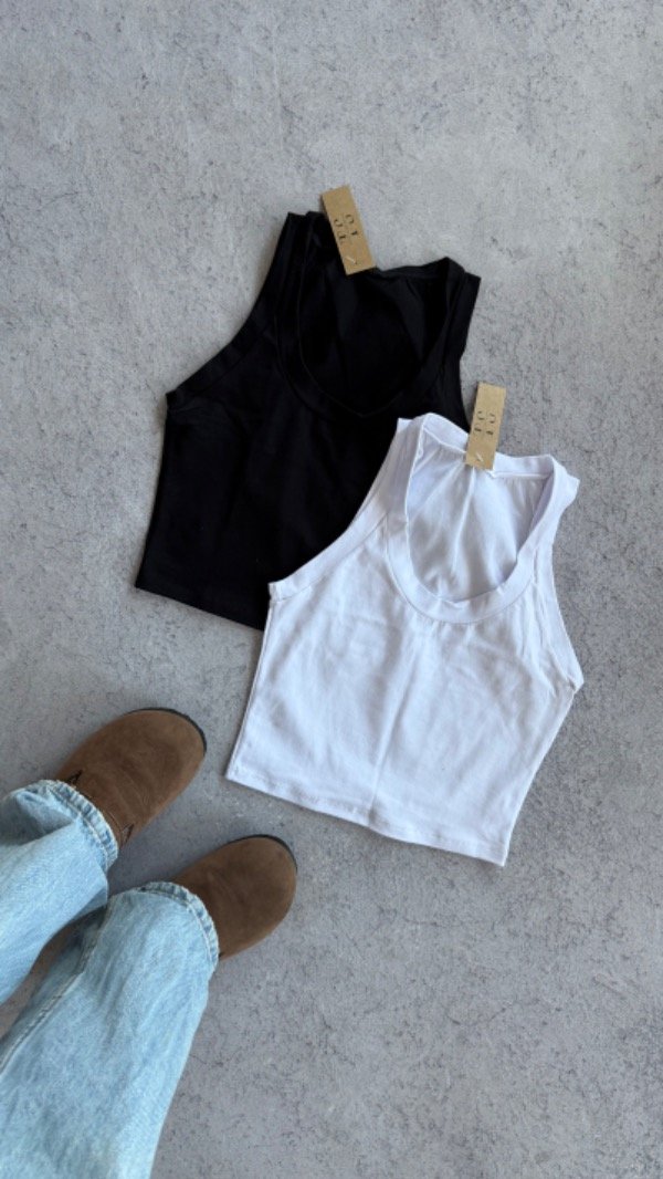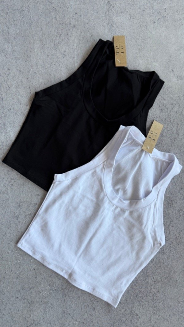 top de algodon con escote redondo. elastizado, talle unico aprox S/M