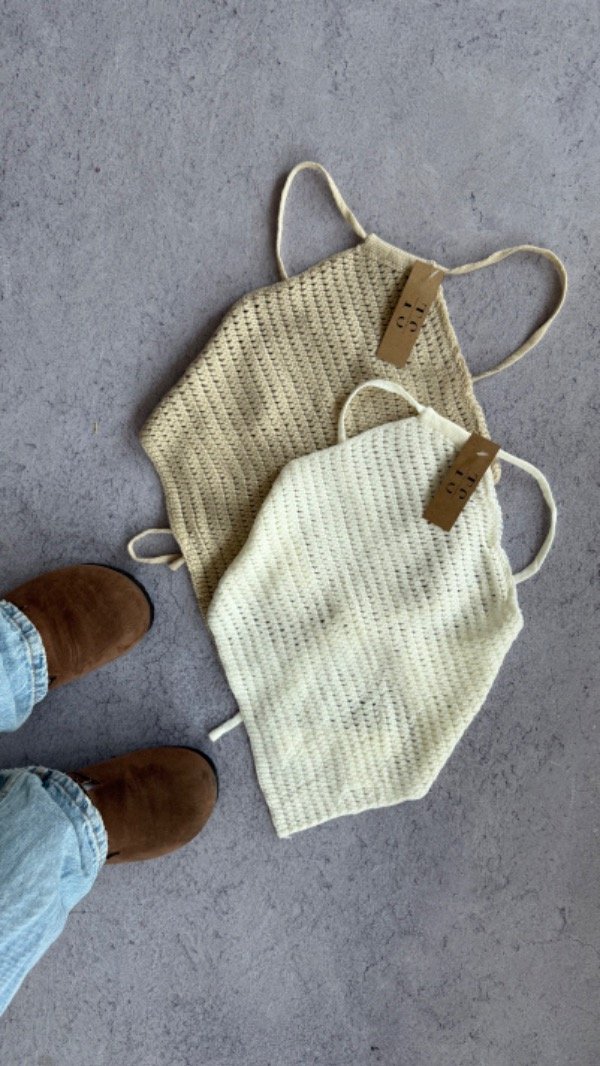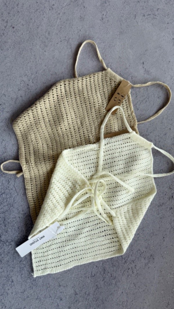 top de hilo con espalda descubierta para atar, corto arriba de la cadera. talle unico aprox S/M