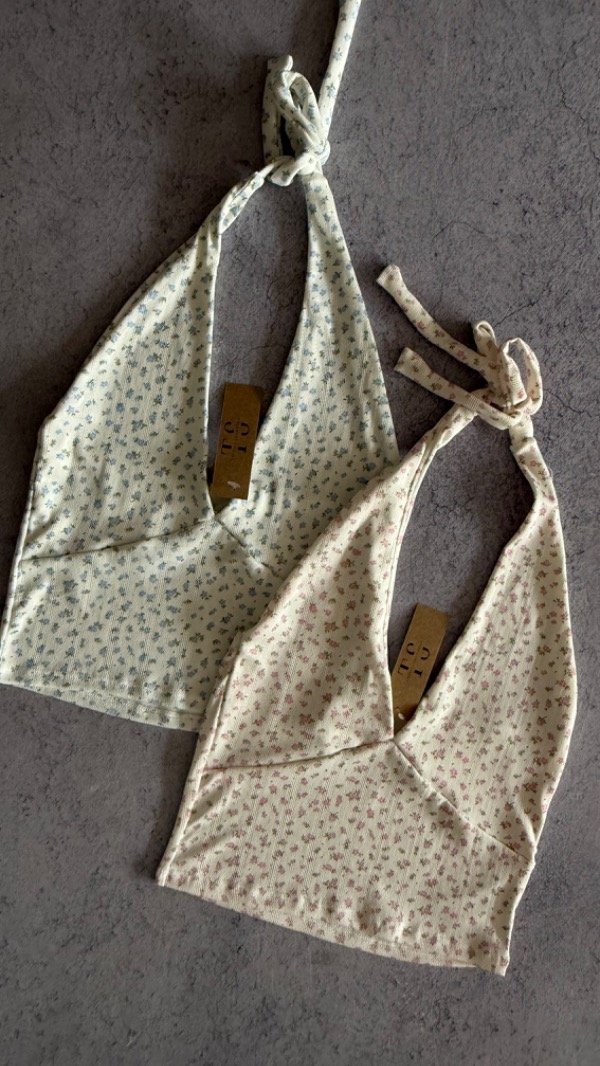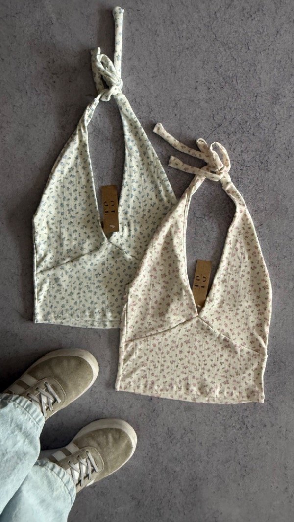 top de brodery estampado con espalda descubierta. elastizada, talle unico aprox S/M