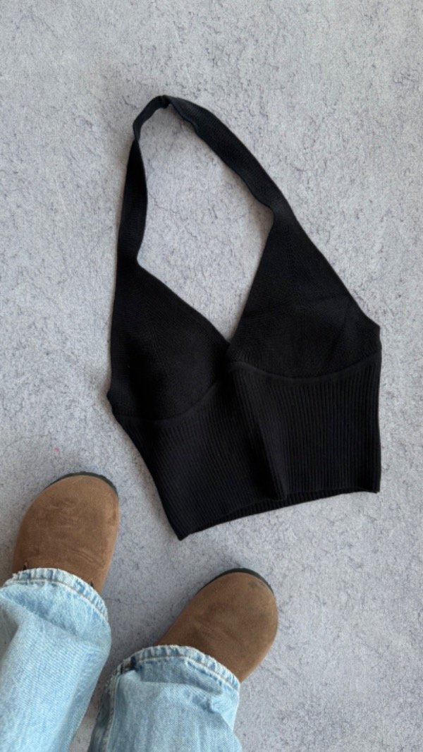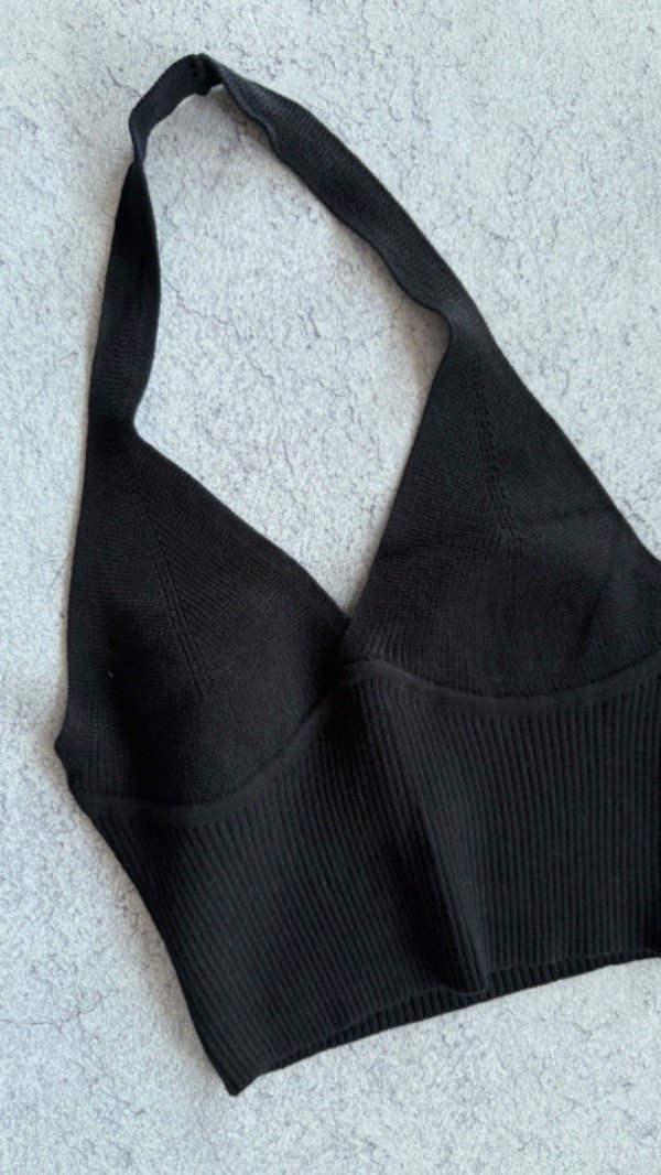 top de crochet sin espalda, corto a la cintura. talle unico aprox S/M