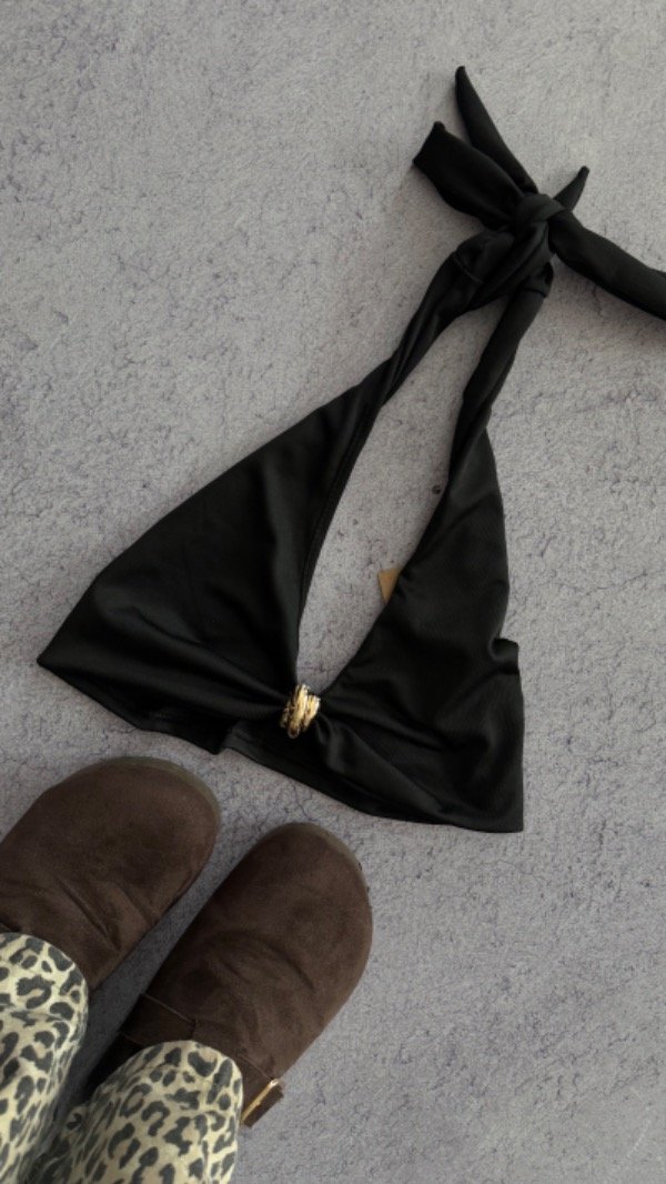 top de microfibra, sin espalda, hebilla de metal en el frente. talle unico aprox S