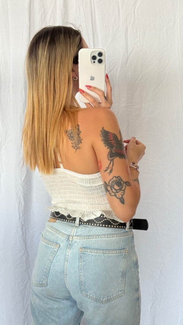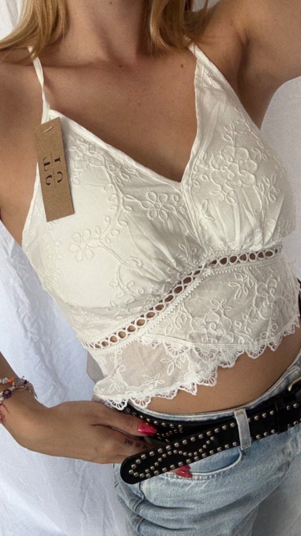 top de brodery con tazas, es elastizado. largo a la cintura aprox. modelo importado