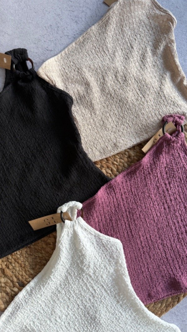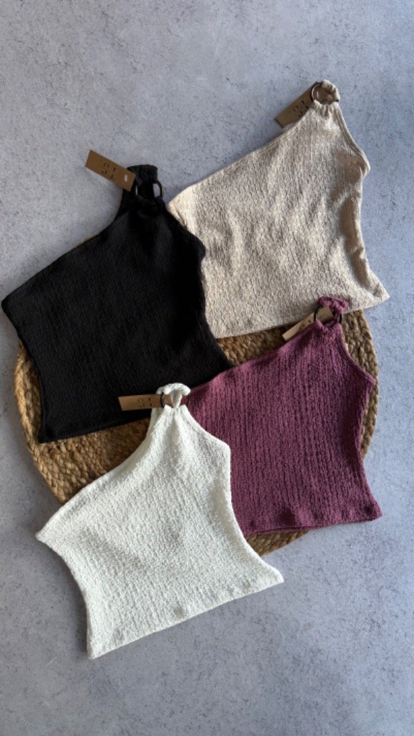 top de bambula con hebilla de plastico. talle unico, aprox S/M