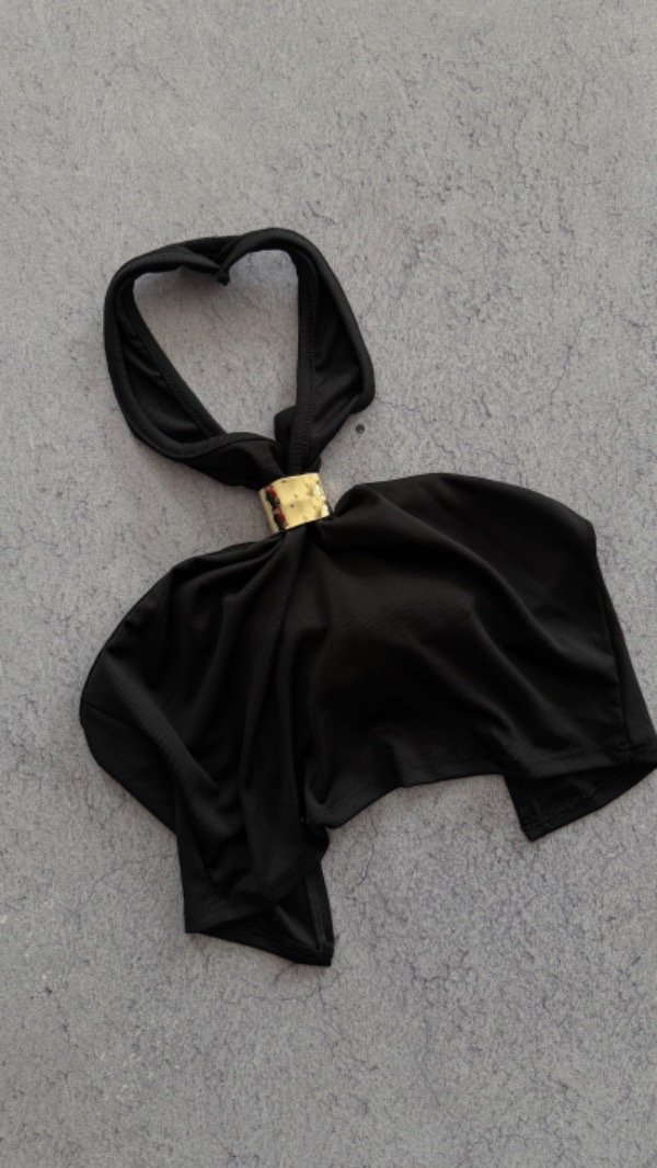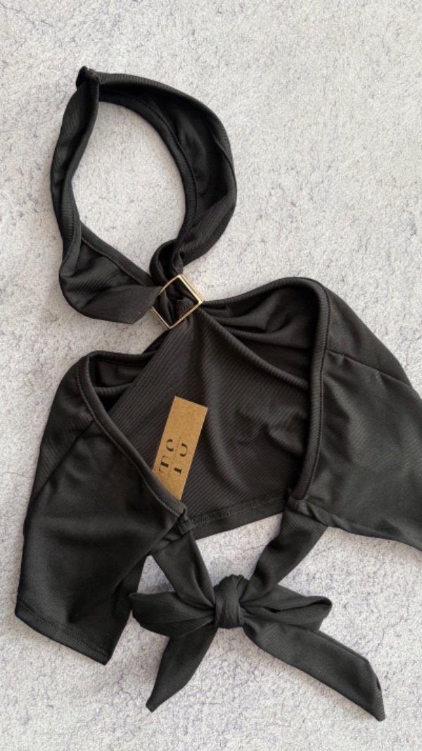 top de ribb irregular, sin espalda, hebilla de metal en el frente. talle unico aprox S
