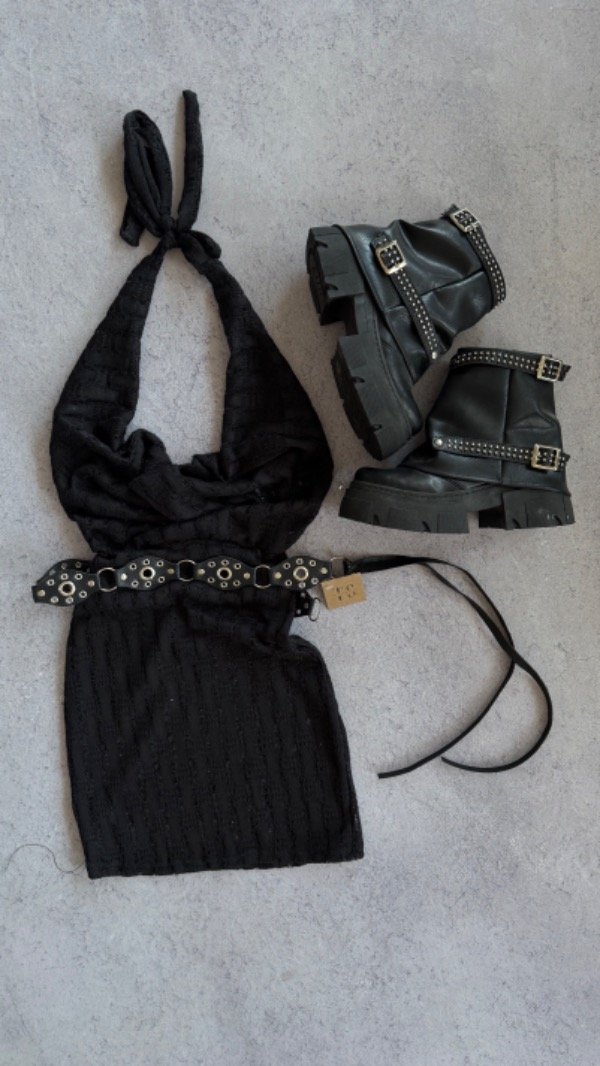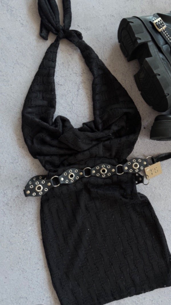 vestido corto calado, tiene un escote buche y espalda descubierta, es elastizado. talle unico aprox S/M