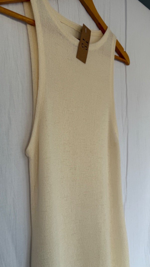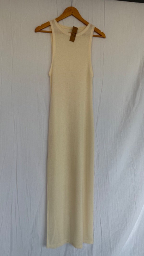 vestido largo tejido con tajo en un lado. es elastizado. talle unico aprox S/M