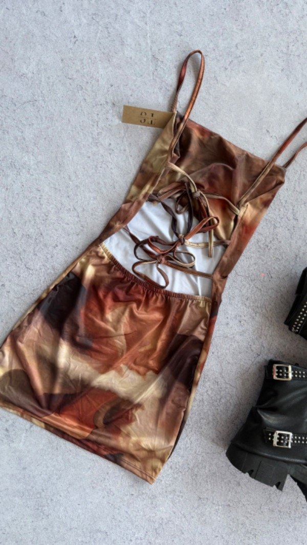 vestido corto de microfibra con espalda descubierta para atar, es elastizado. talle unico aprox S