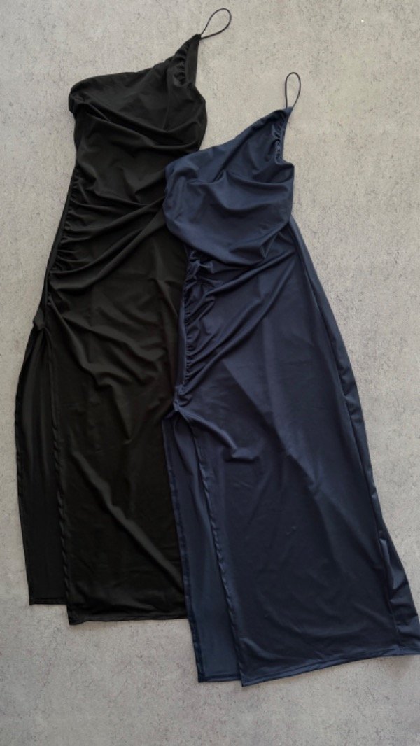 vestido largo de microfibra con frunce lateral y tajo, es elastizado. talle unico aprox S